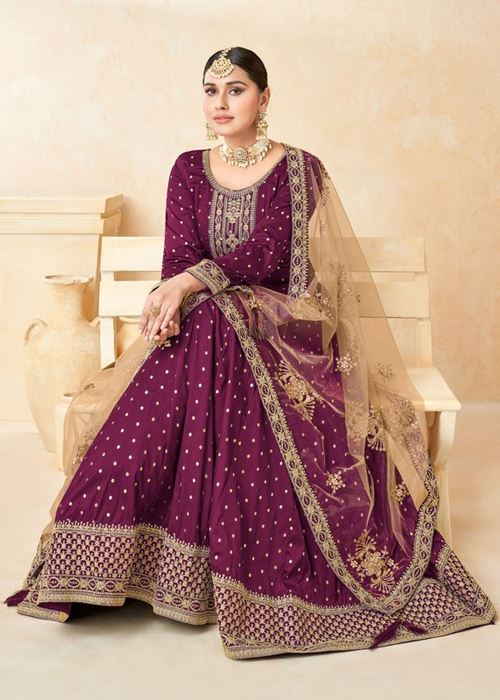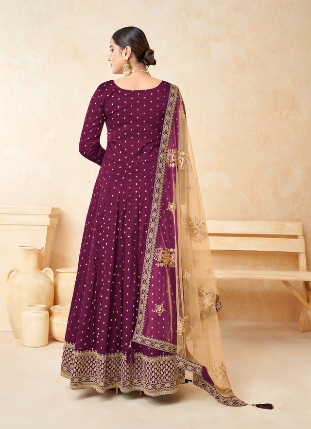 Magenta Taffeta Butti Heavy Thread Embroidery, Zari With Sequins Work Anarkali Suits