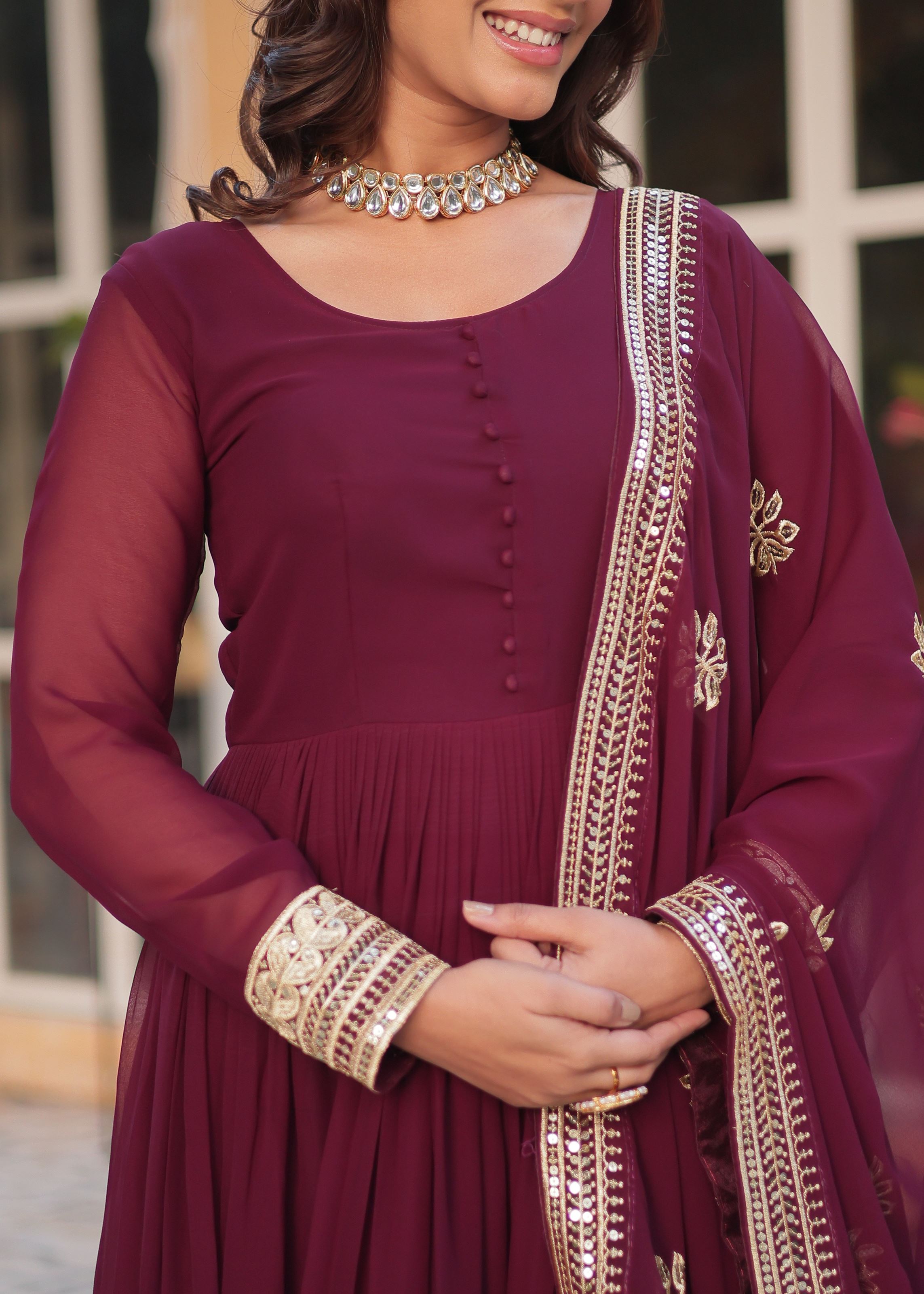 Maroon Faux Blooming Suit With Embroidery Zari Sequins-Work