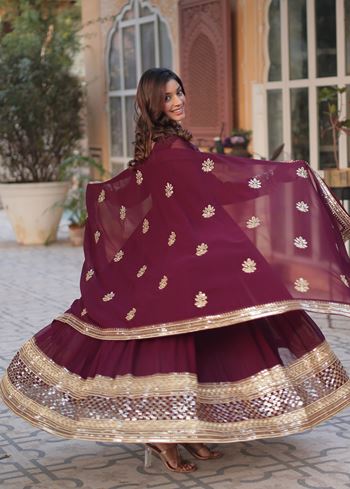 Maroon Faux Blooming Suit With Embroidery Zari Sequins-work