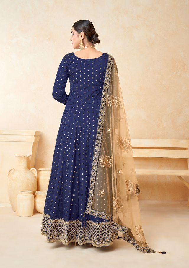 Navy Blue Taffeta Butti Heavy Thread Embroidery, Zari With Sequins Work Anarkali Suits