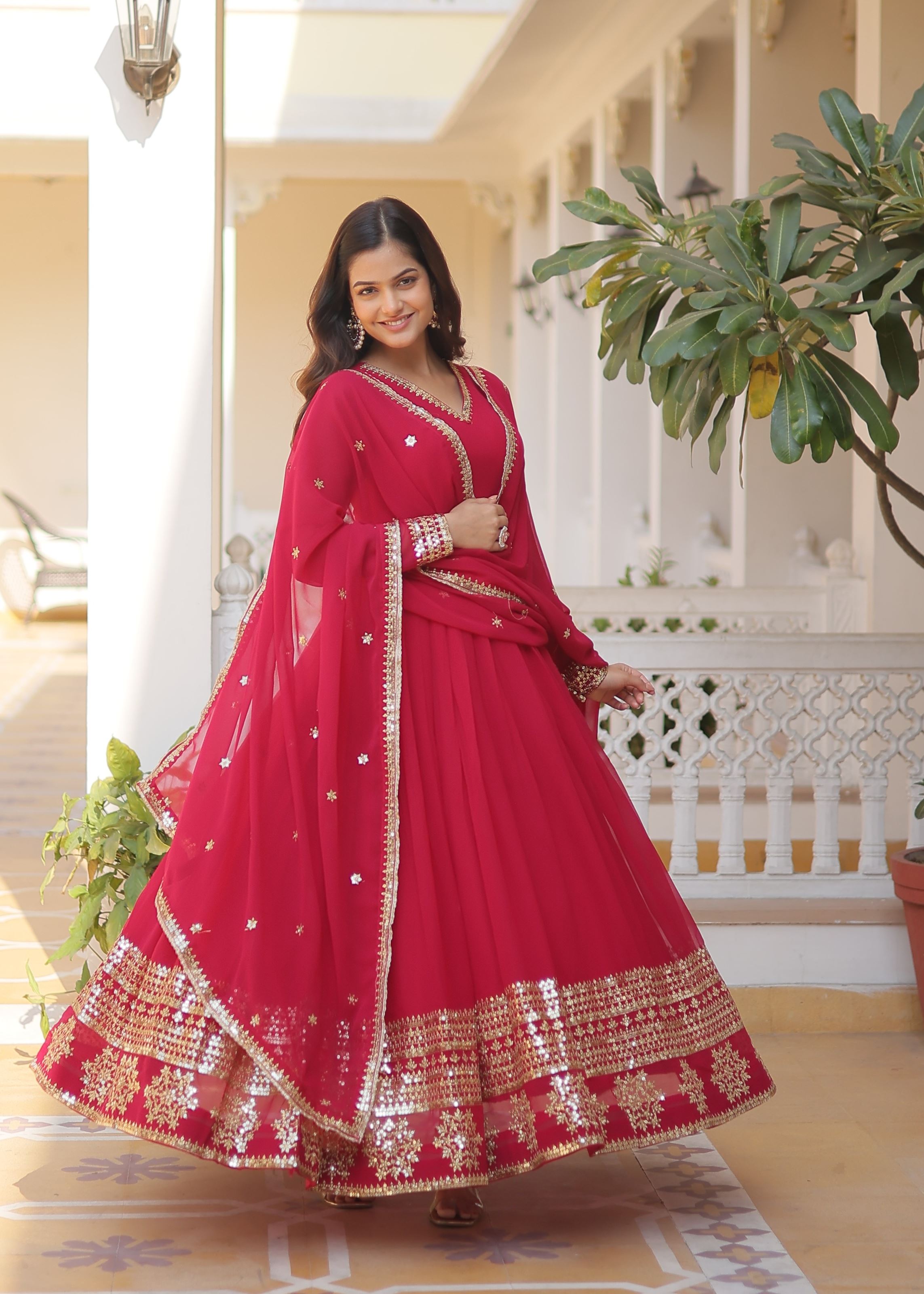 Add a soft, feminine charm to your ethnic wardrobe with the Pink Faux Blooming Suit With Sequins Embroidered Multi-Sequins Work, brought to you by Aethnofit Fashions. Crafted from high-quality faux georgette, this elegant suit features a lightweight feel and graceful fall, making it perfect for festive occasions, weddings, or even elegant office wear. The soft pink hue is delicately enhanced with intricate multi-sequins embroidery, blending sparkle and tradition in a modern silhouette.