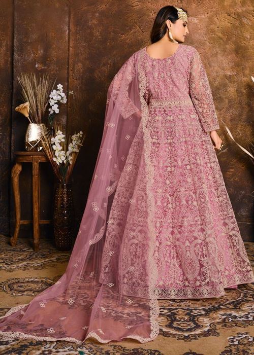 Pink Net Heavy Thread Embroidery Work Anarkali Suits
