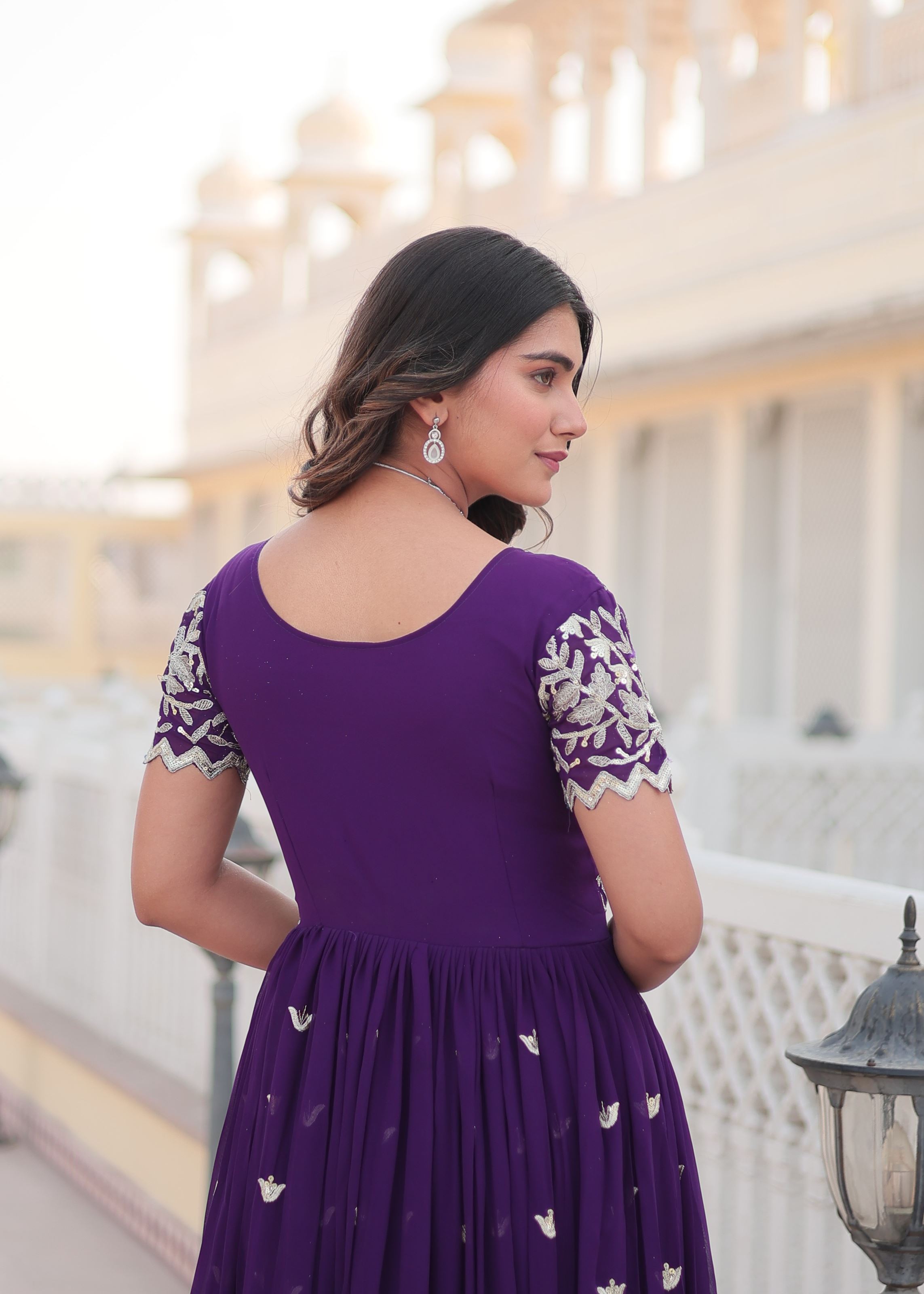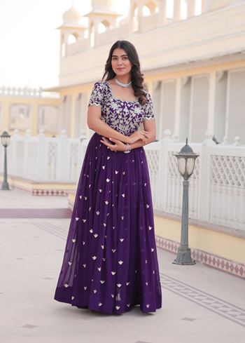 Embrace regal elegance with the Purple Faux Blooming Suit With Sequins Embroidered Work, exclusively from Aethnofit Fashions. Crafted from premium faux blooming georgette, this stunning ensemble offers a soft texture, graceful fall, and all-day comfort — perfect for weddings, receptions, or refined office wear salwar suits. The deep purple tone radiates royalty and sophistication, while the shimmering sequins embroidery adds festive charm and contemporary flair.