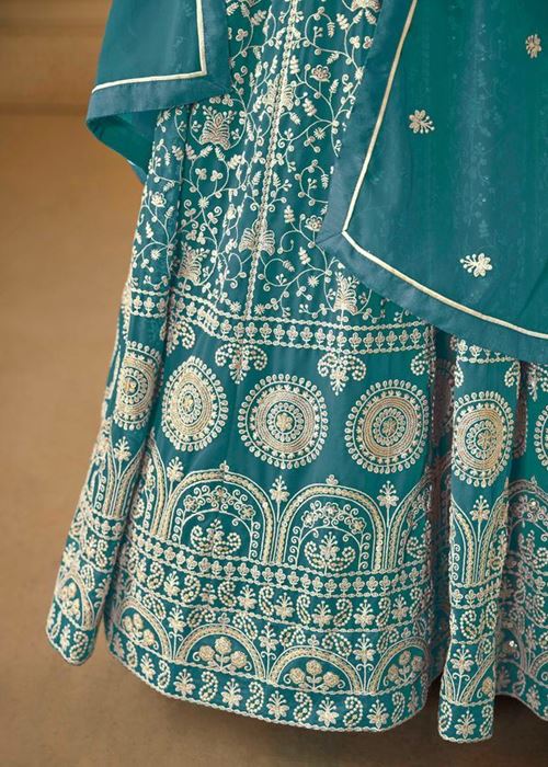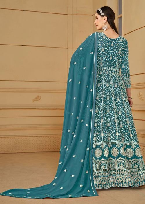 Teal Anarkali Suit With Heavy Thread Embroidery With Sequis Work