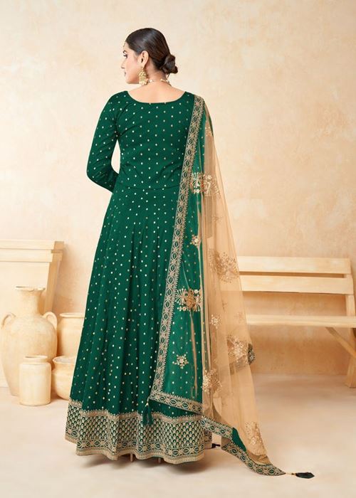Green Taffeta Butti Heavy Thread Embroidery, Zari With Sequins Work Anarkali Suits