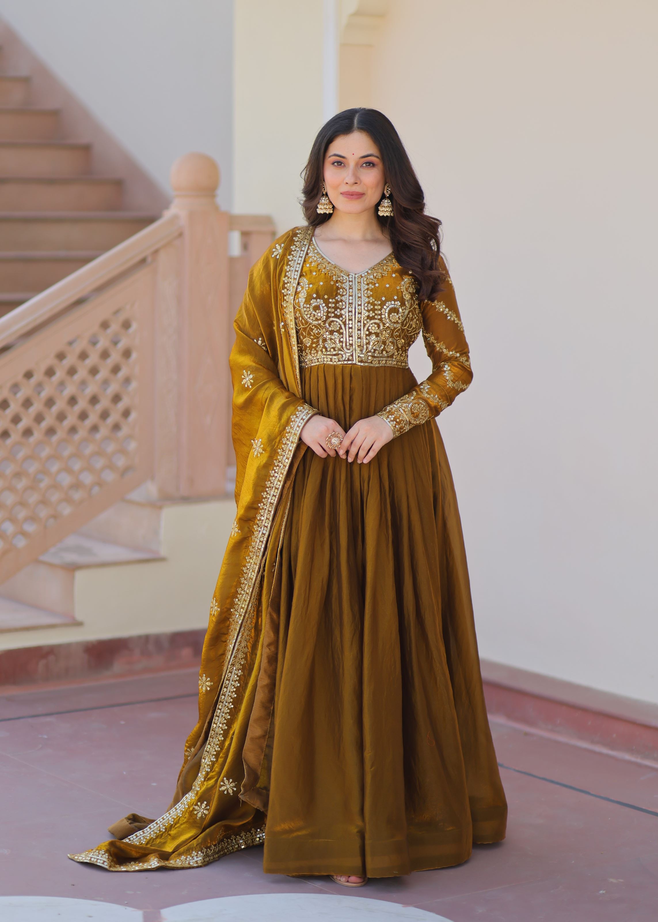 Mehandi Anarkali With Heavy Zari & Sequins Embroidered Work