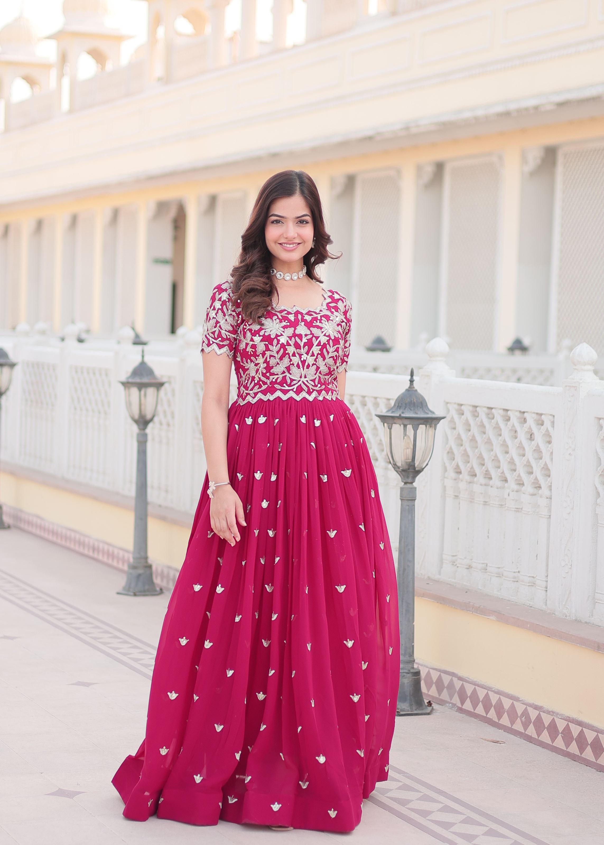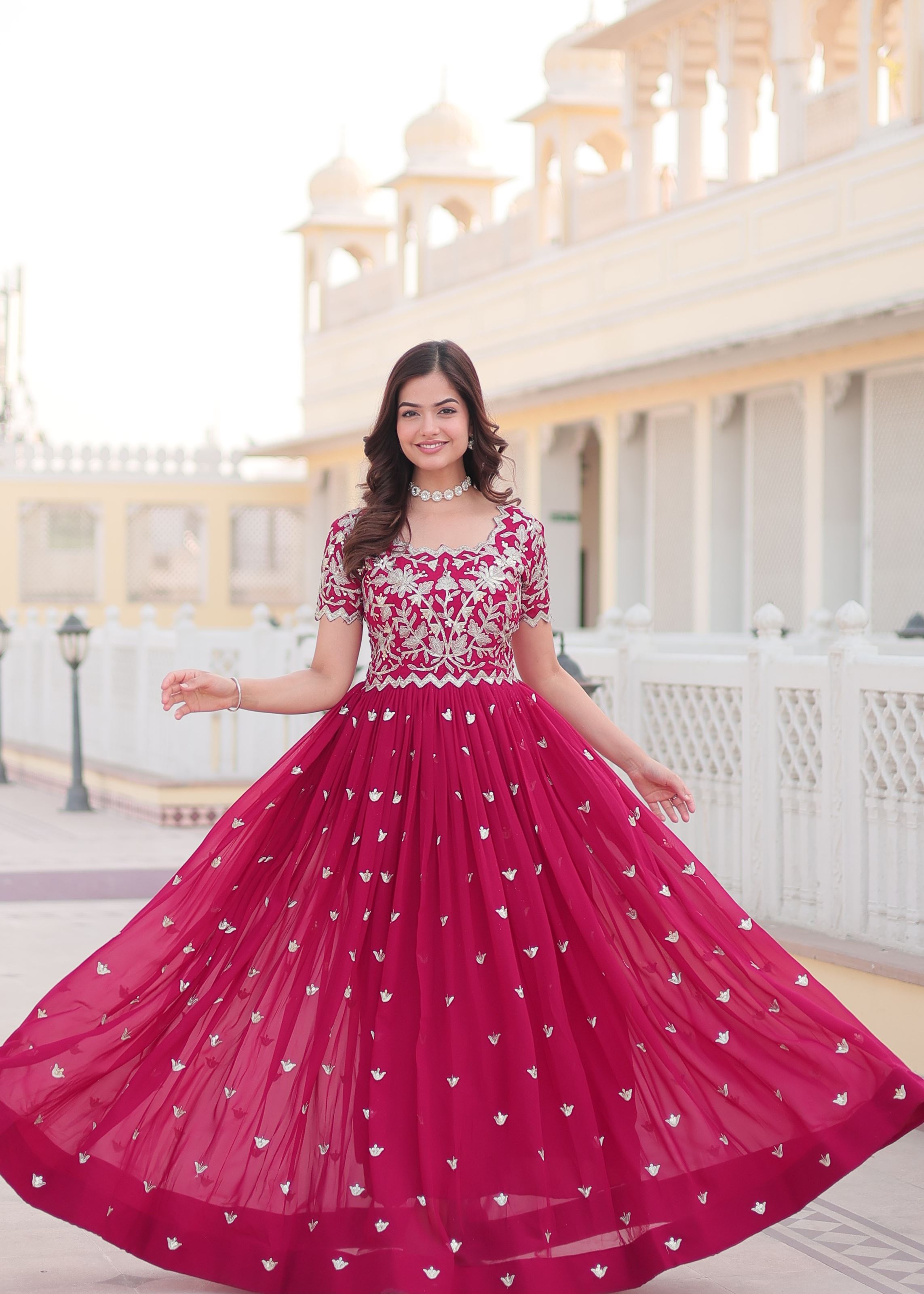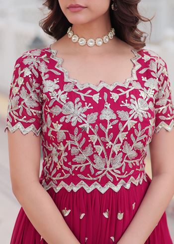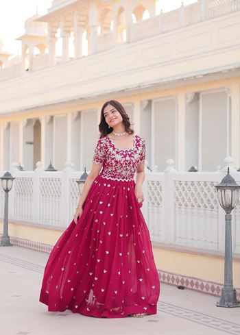 Unlike semi-stitched garments, this Anarkali suit is fully stitched, offering a polished, figure-flattering silhouette straight out of the box. Designed and crafted in India, it includes a beautifully embellished kurta, matching bottom, and a dupatta that ties the look together with elegance and detail.