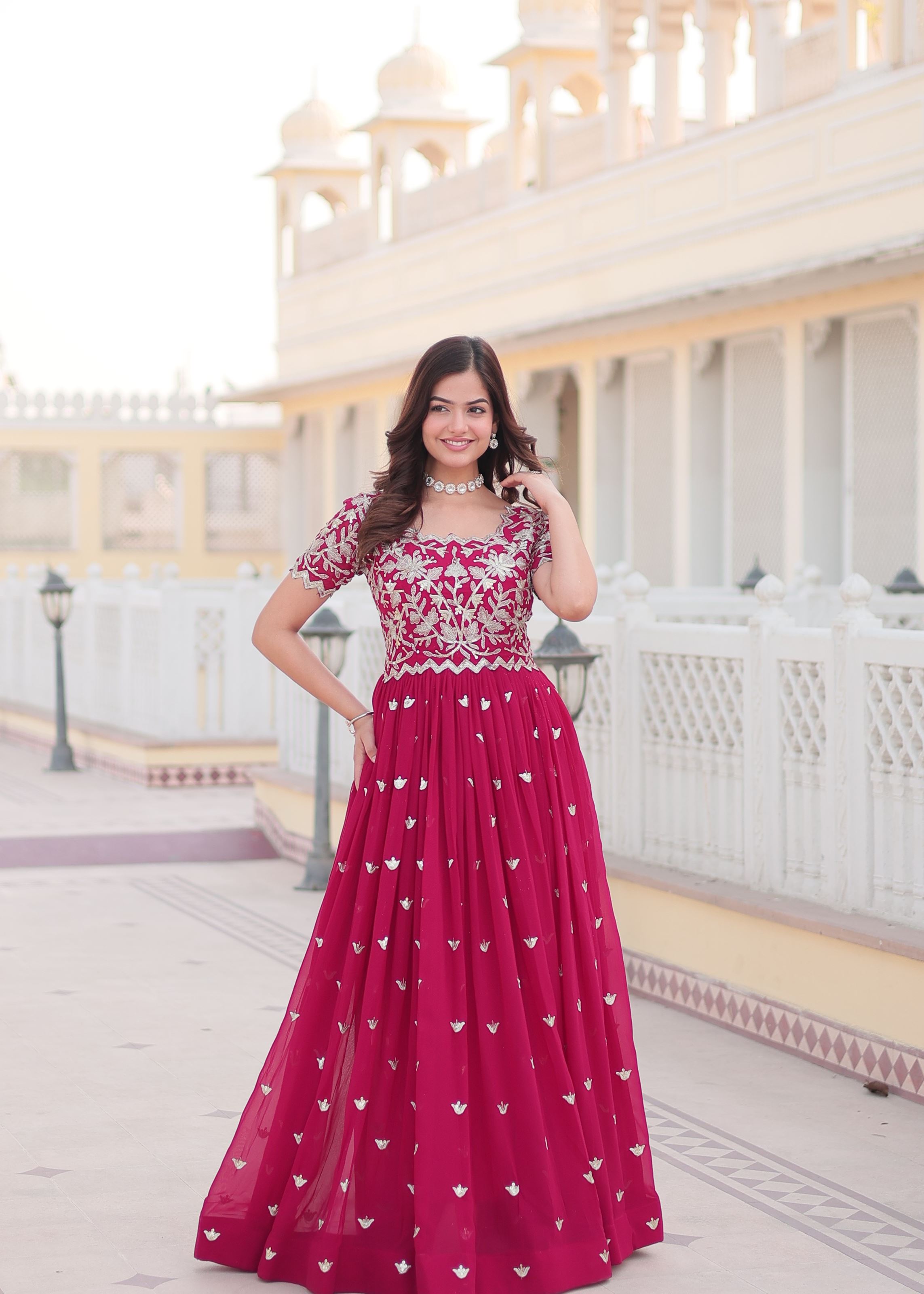 Turn heads with grace in the Pink Faux Blooming Suit With Sequins Embroidered Work, a ready-to-wear stitched Anarkali suit from Aethnofit Fashions. Tailored from premium faux blooming georgette, this outfit combines feminine charm with luxurious comfort. The soft pink hue radiates subtle elegance, while intricate sequins embroidery adds a festive sparkle — making it the perfect choice for celebrations, weddings, or sophisticated day functions.