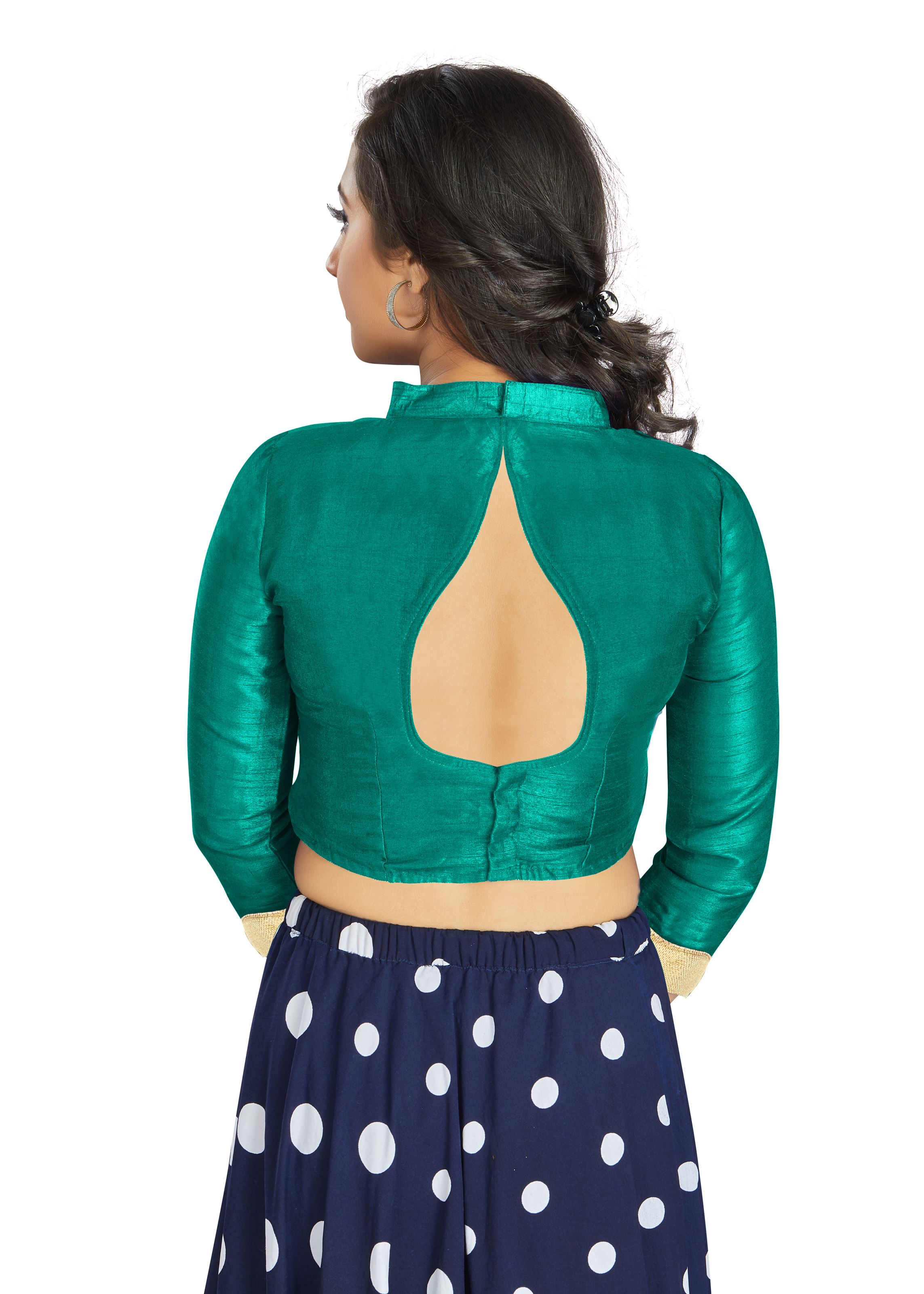 Embrace a fresh take on ethnic fashion with Aethnofit Fashions' Aqu Green Art Silk Blouse, designed to redefine elegance for the modern Indian woman in the USA. This ready-to-wear blouse features a graceful V neck Chinese collar that blends contemporary design with traditional roots, making it ideal for festive occasions, weddings, or evening gatherings.