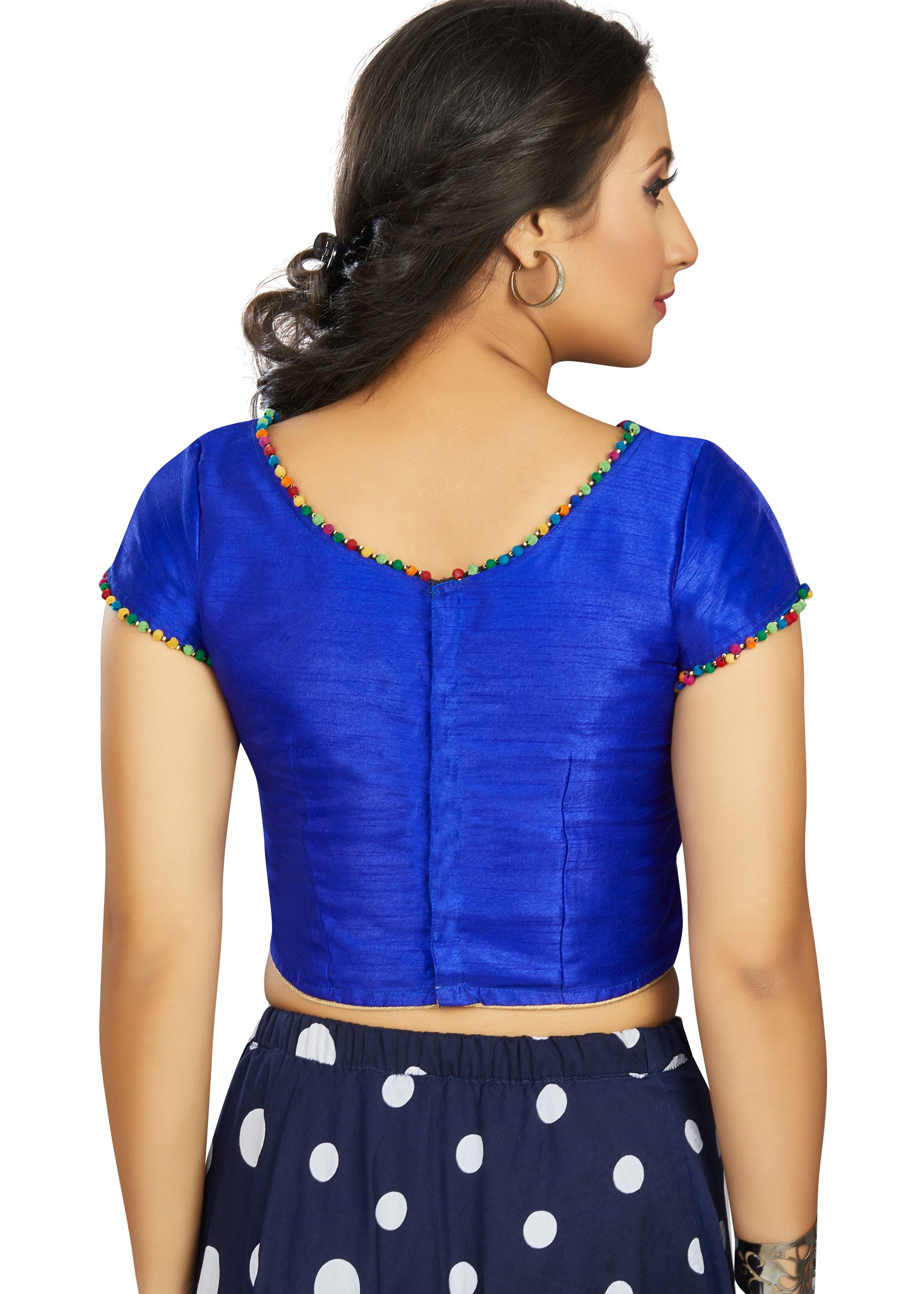 Add a pop of elegance to your traditional wear collection with this Blue Art Silk Boat Neck Blouse. Crafted from smooth and lustrous art silk fabric, this blouse blends comfort with richness, making it a perfect pick for festive occasions, weddings, or everyday ethnic styling.