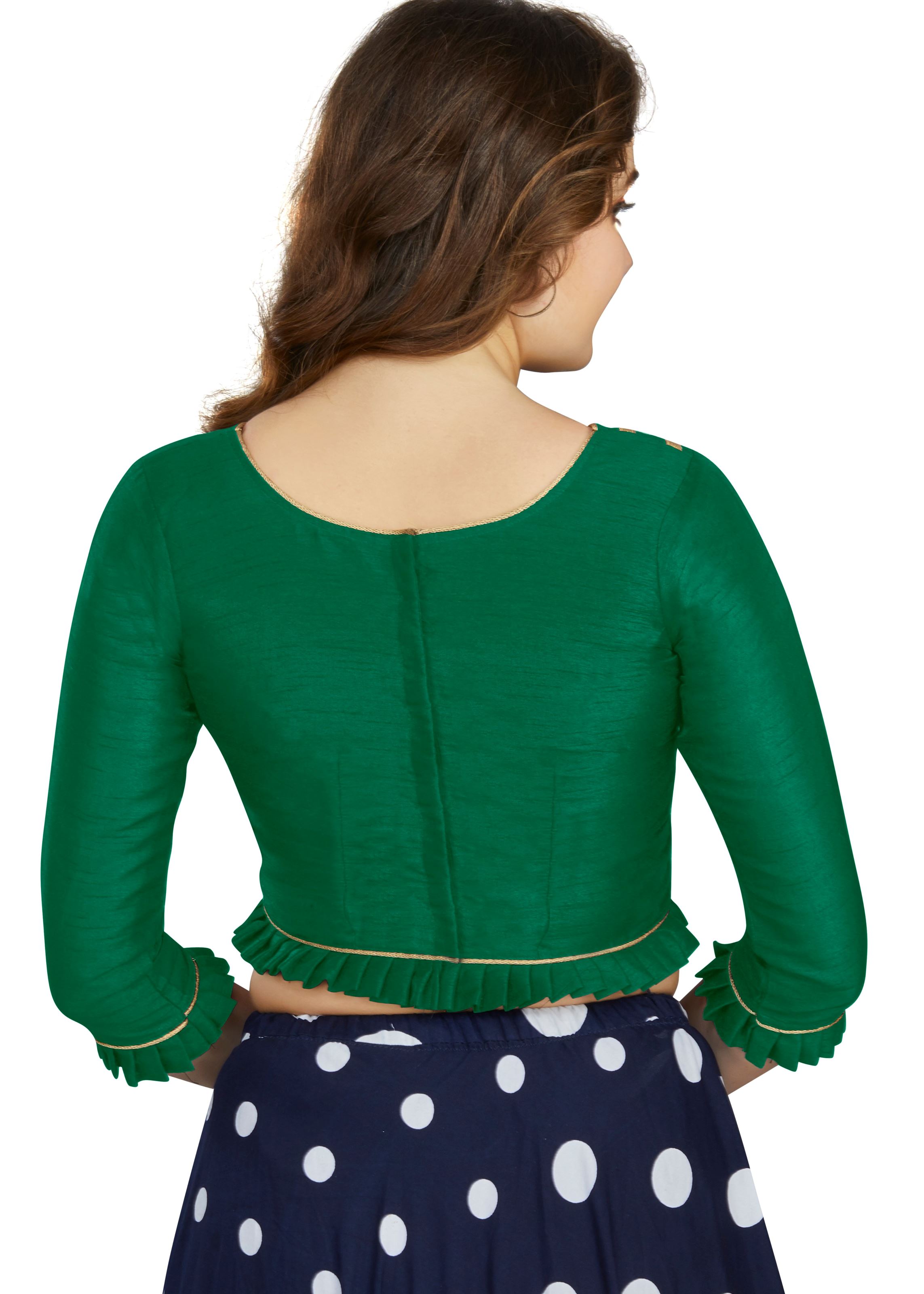 Elevate your traditional wear with this Bottle Green Art Silk Boat Neck Plain Blouse, a timeless addition to your ethnic collection. Crafted from premium art silk fabric, it delivers a luxurious sheen and comfortable fit that flatters all body types. The rich bottle green color lends a regal touch, perfect for pairing with silk, chiffon, or cotton sarees for a striking ensemble.
