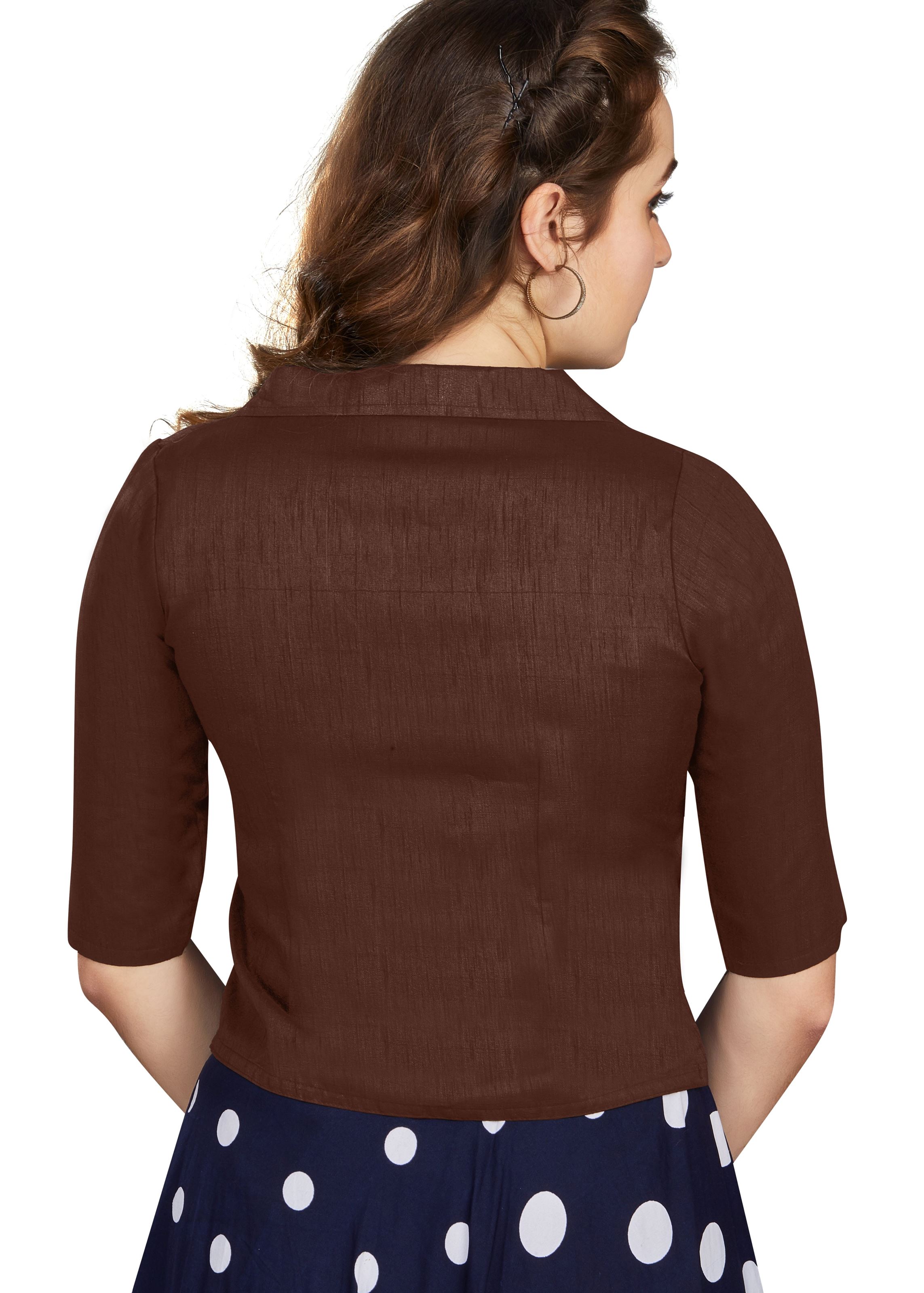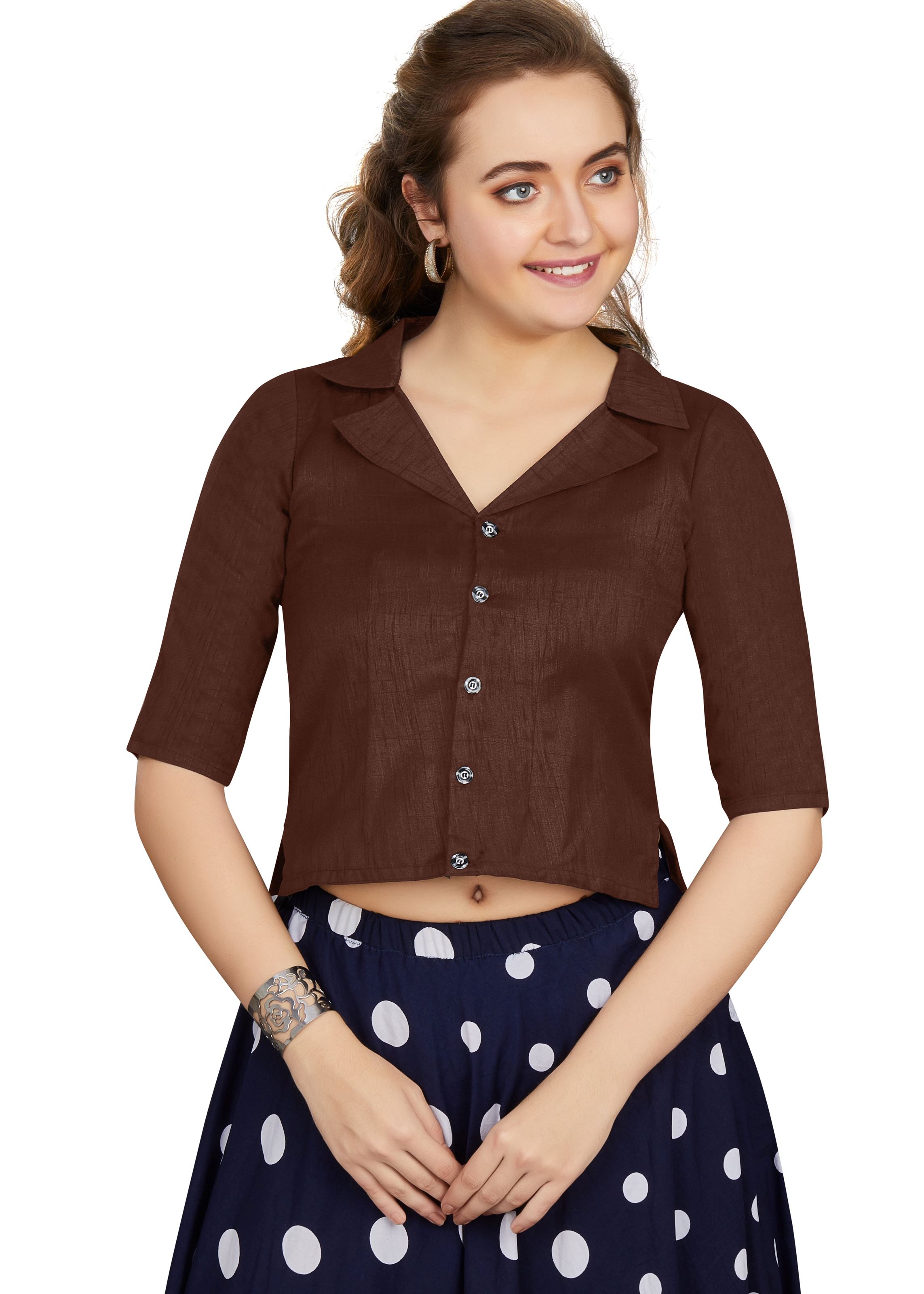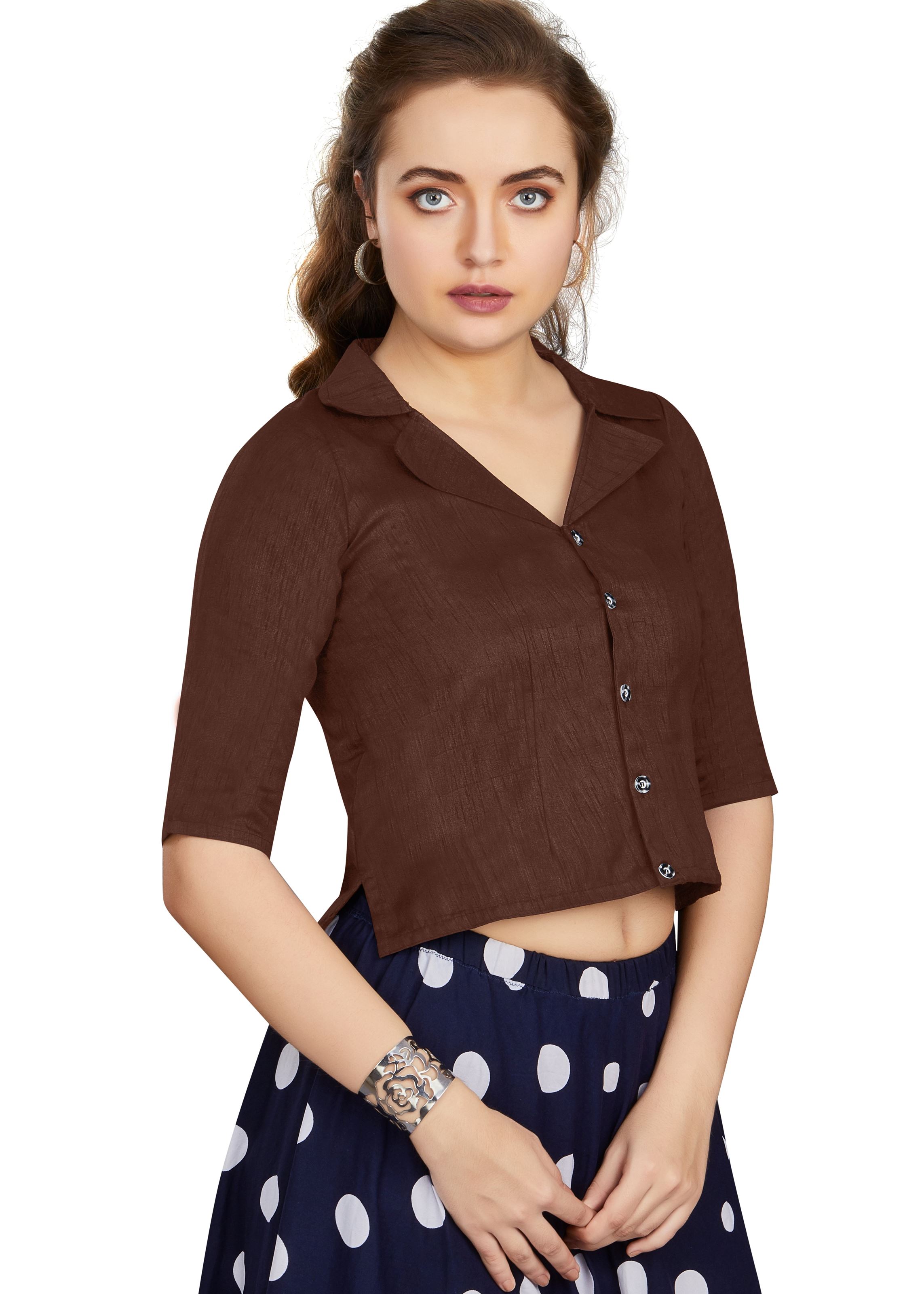 Add a touch of refined sophistication to your ethnic wardrobe with the Coffee Art Silk Collar Neck Plain Blouse by Aethnofit Fashions. Tailored in premium art silk, this blouse showcases a subtle shine and a rich coffee tone that flatters all complexions. It’s a versatile essential that seamlessly complements silk, printed, or embroidered sarees, making it a must-have for festive and formal styling.