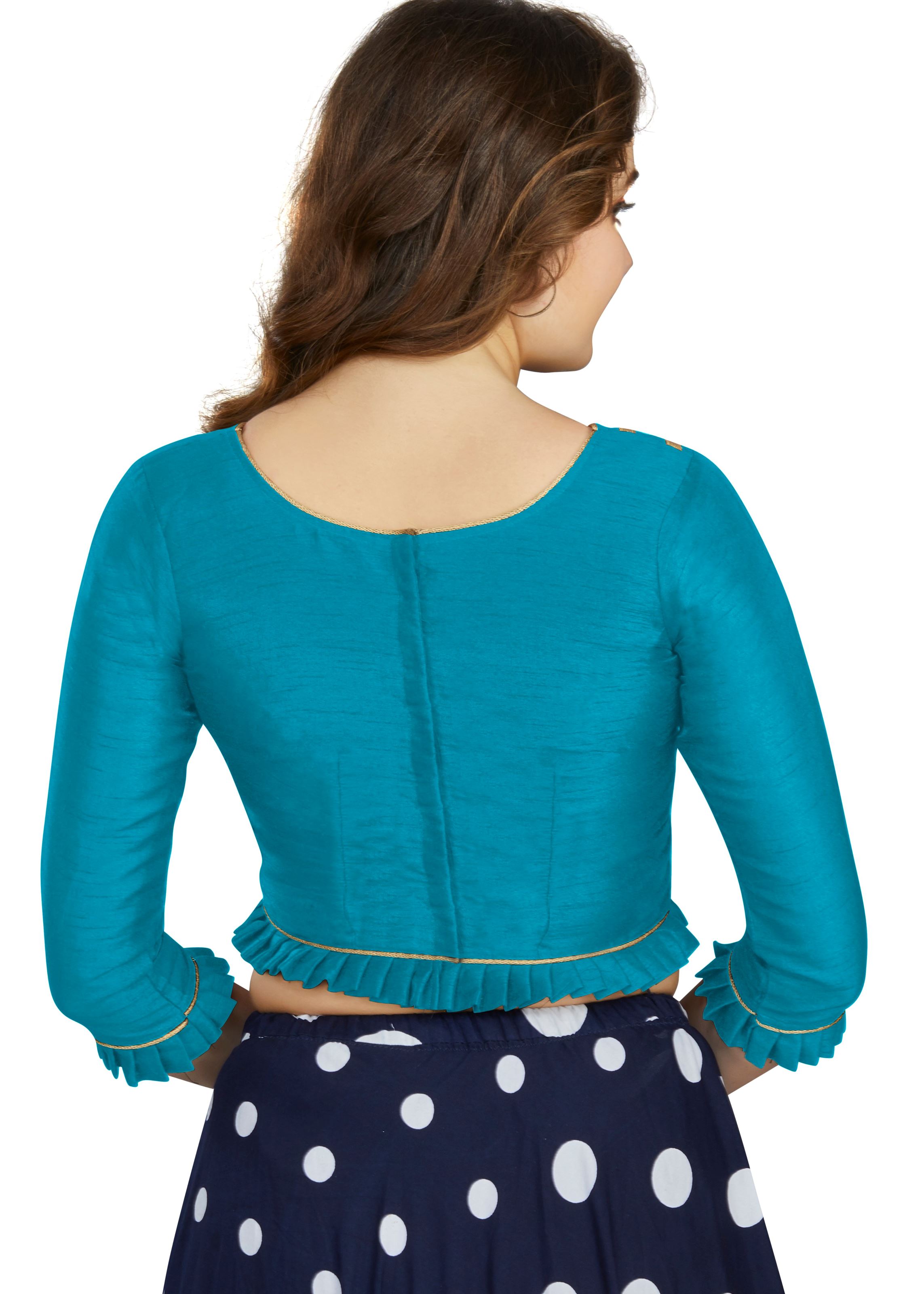 Brighten your wardrobe with the refreshing charm of the Firozi Art Silk Boat Neck Plain Blouse. Crafted from high-quality art silk, this blouse combines a smooth texture with a graceful shine, offering an ideal pairing for festive or casual saree styling.