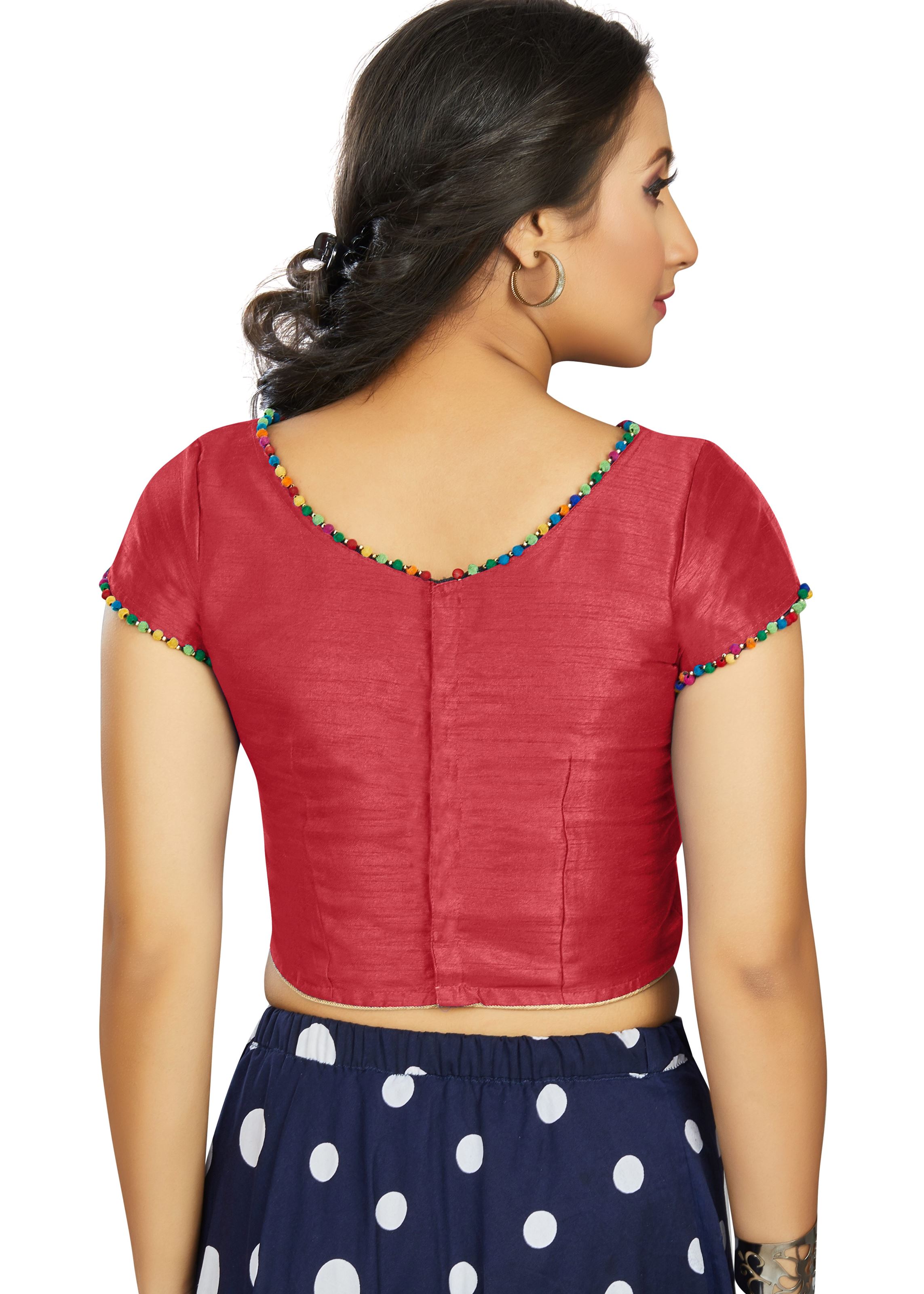 Infuse freshness and subtle elegance into your ethnic wardrobe with the Gajri Art Silk Boat Neck Plain Blouse from Aethnofit Fashions. Tailored from soft, breathable art silk, this ready-to-wear blouse is designed to offer both comfort and finesse. The graceful gajri (peach-pink) tone is perfect for creating soothing, romantic looks that pair effortlessly with light or vibrant sarees, making it ideal for festive events, casual gatherings, and day functions.