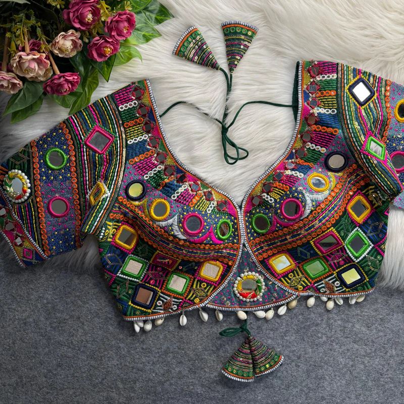 Designed for those who love to blend ethnic elegance with statement styling, this blouse is part of our best-selling Garba Blouses for Navratri and Embroidered Blouses for Women collections. Whether paired with a traditional chaniya choli, a vibrant lehenga, or styled with a modern saree, it brings versatility, charm, and cultural richness to your festive wardrobe.