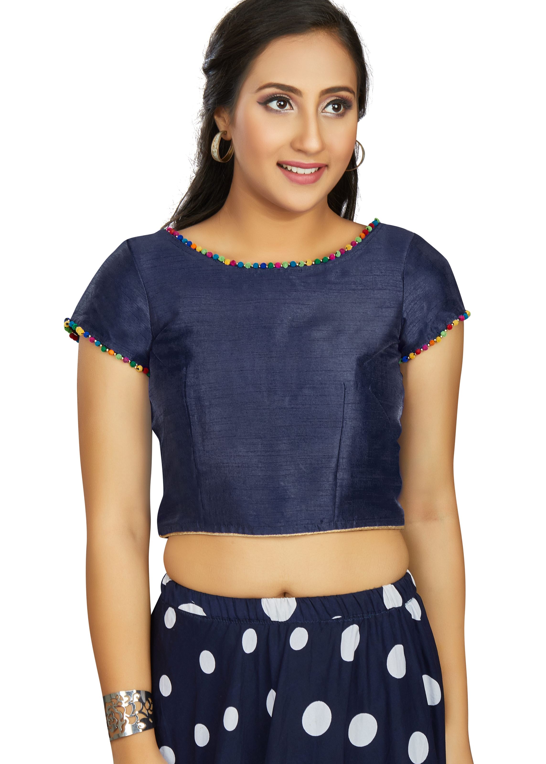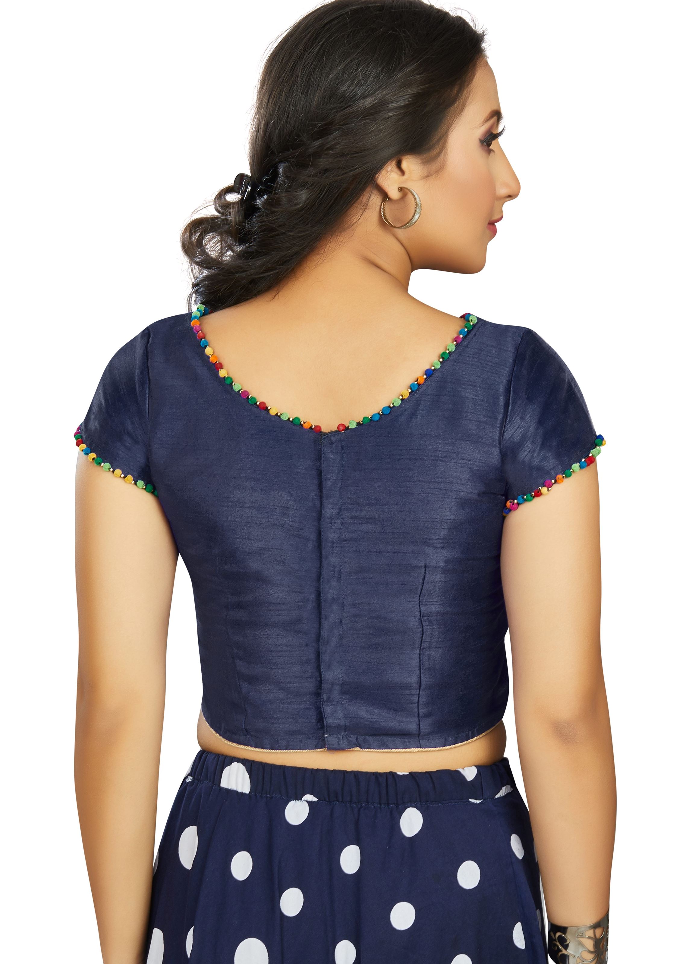 The minimalistic plain finish in a deep navy blue hue makes it a versatile pick for pairing with a variety of sarees—from printed georgettes to heavy silks. The structured boat neck design adds a touch of elegance, making it suitable for both festive occasions and casual outings. Perfect for those who love subtle sophistication without compromising on style.