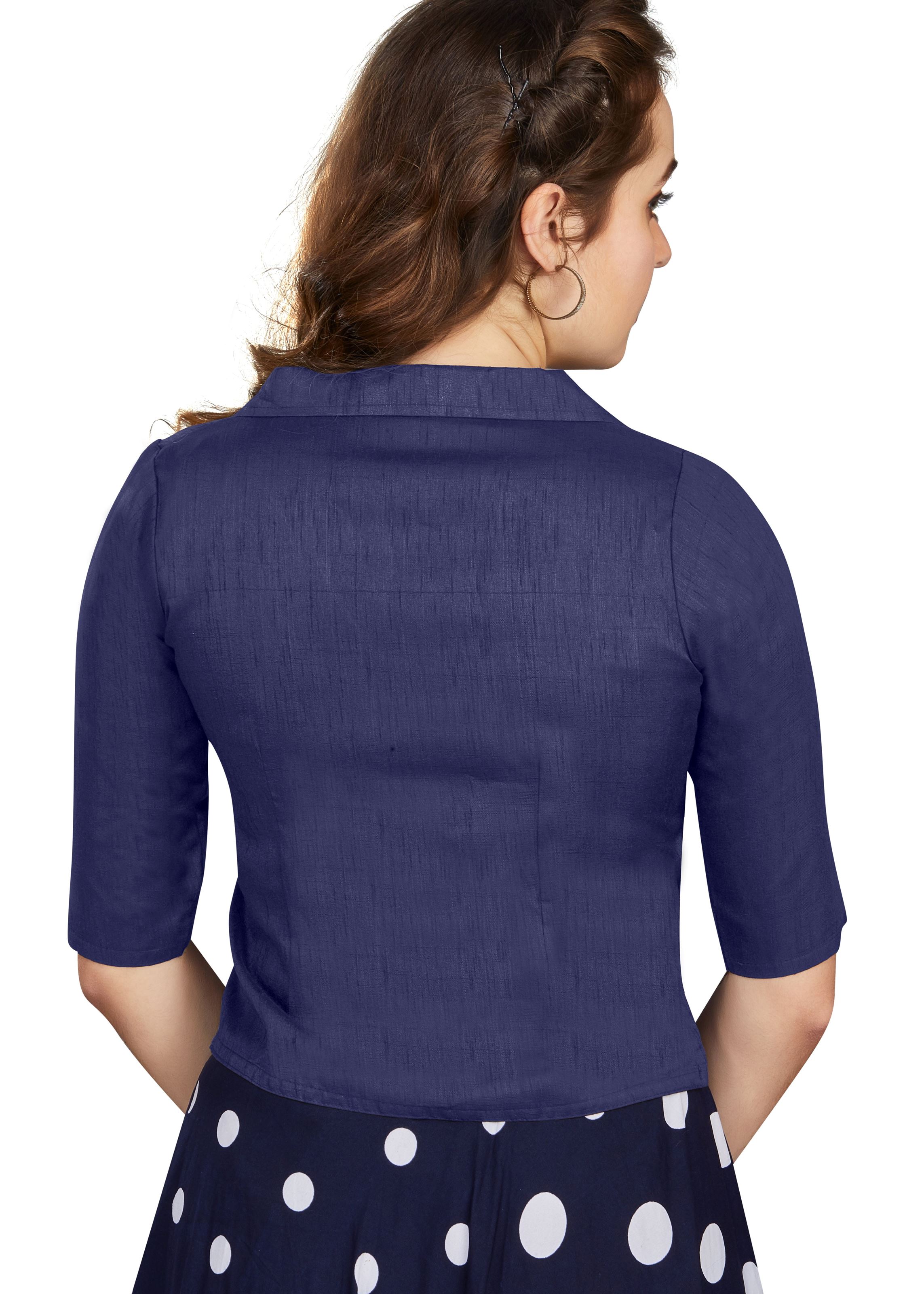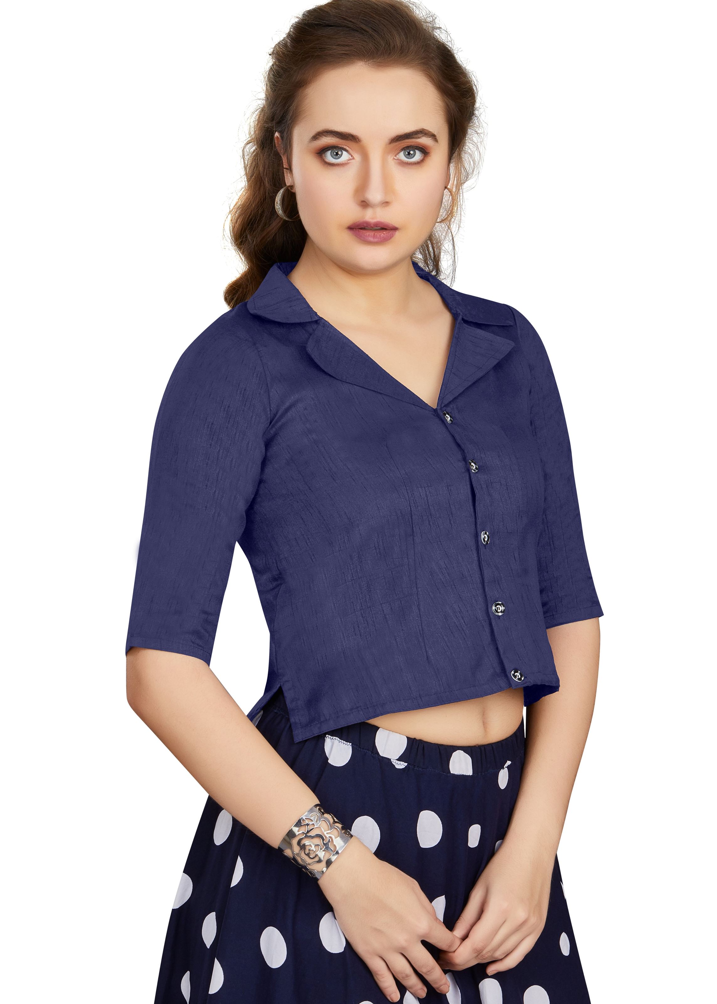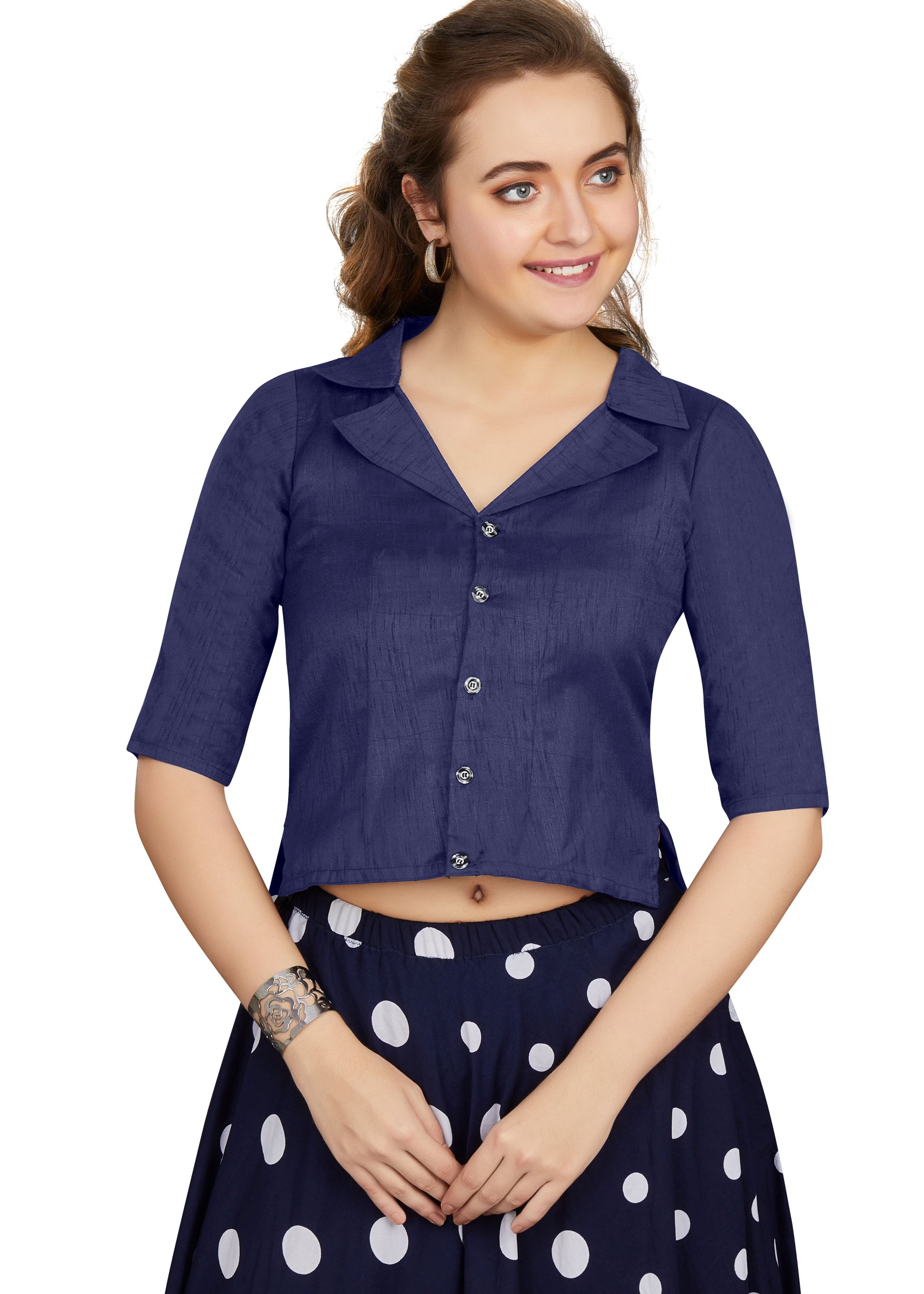 Navy Blue Art Silk Collar Neck Plain Blouse