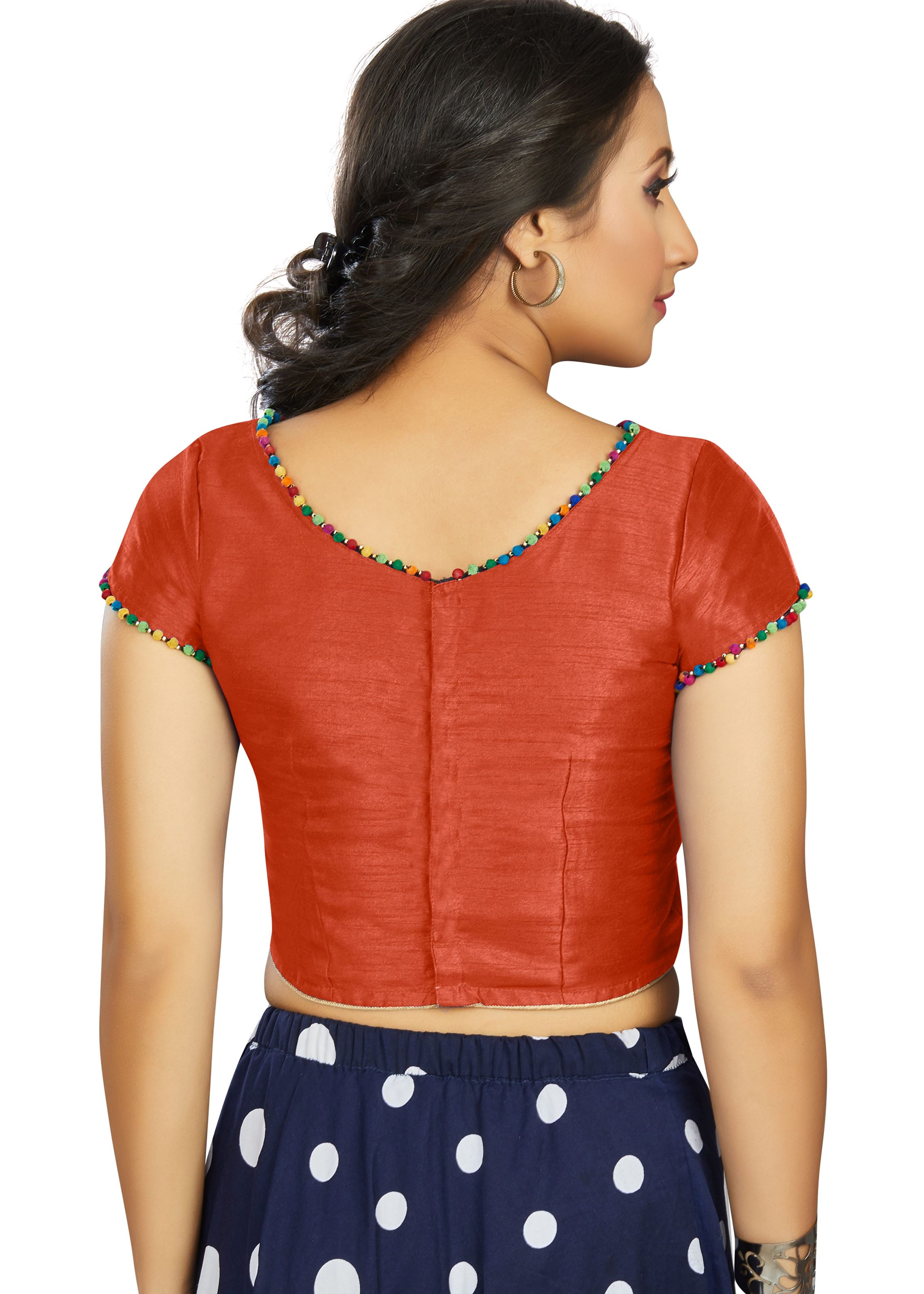 Make a statement with understated grace. Whether worn at a puja, mehendi, or styled as everyday ethnic chic, the Orange Art Silk Blouse is a wardrobe essential for modern women who love tradition with a contemporary twist.