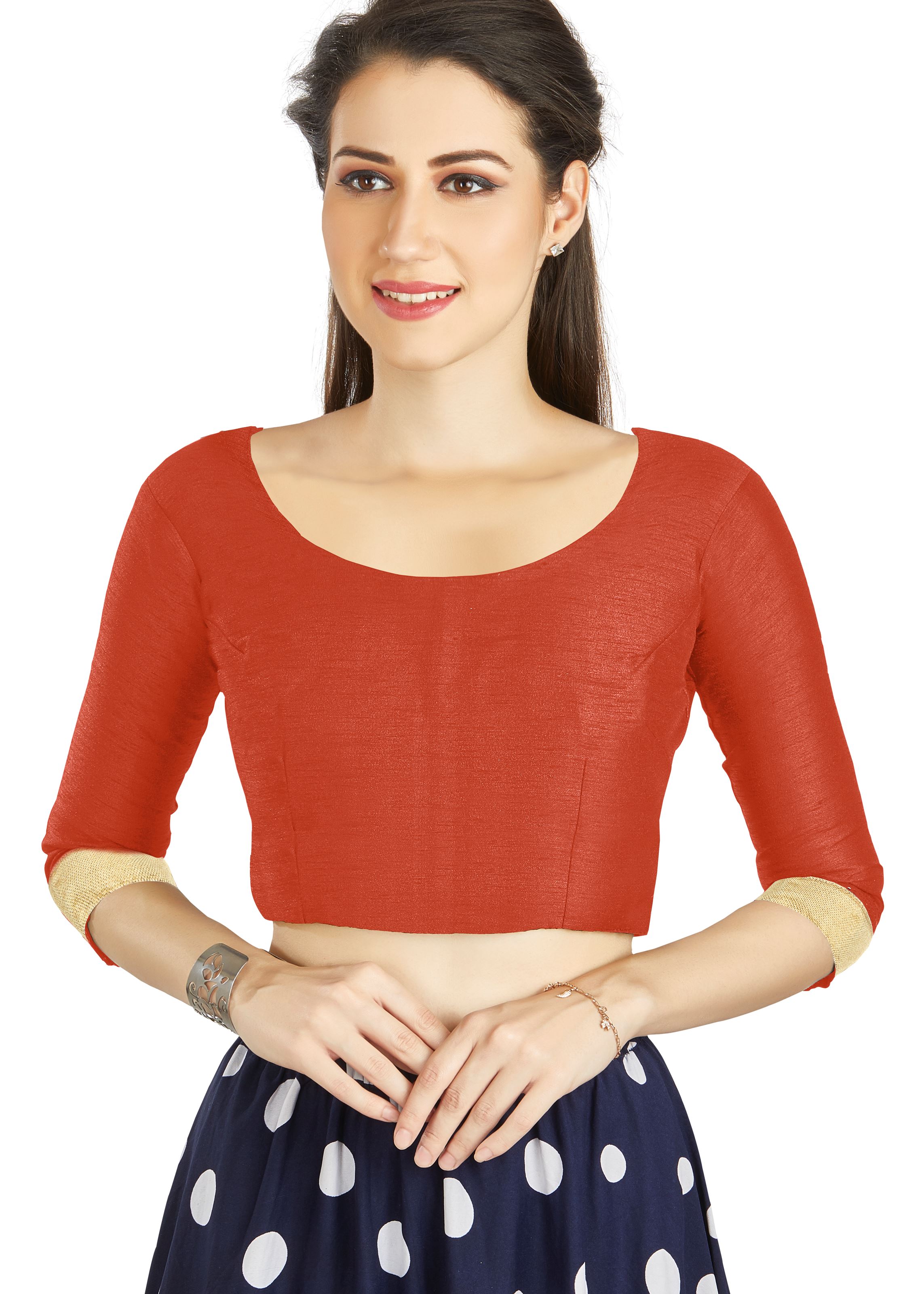 Brighten your ethnic wardrobe with this vibrant Orange Art Silk Blouse, featuring a classic U-neck cut and exquisite matty work on the sleeves. The art silk fabric gives this blouse a refined finish, perfect for festive gatherings, cultural functions, and celebrations. This ready-to-wear blouse combines traditional charm with a modern twist, making it a must-have staple for saree lovers who want elegance without the stitching hassle.