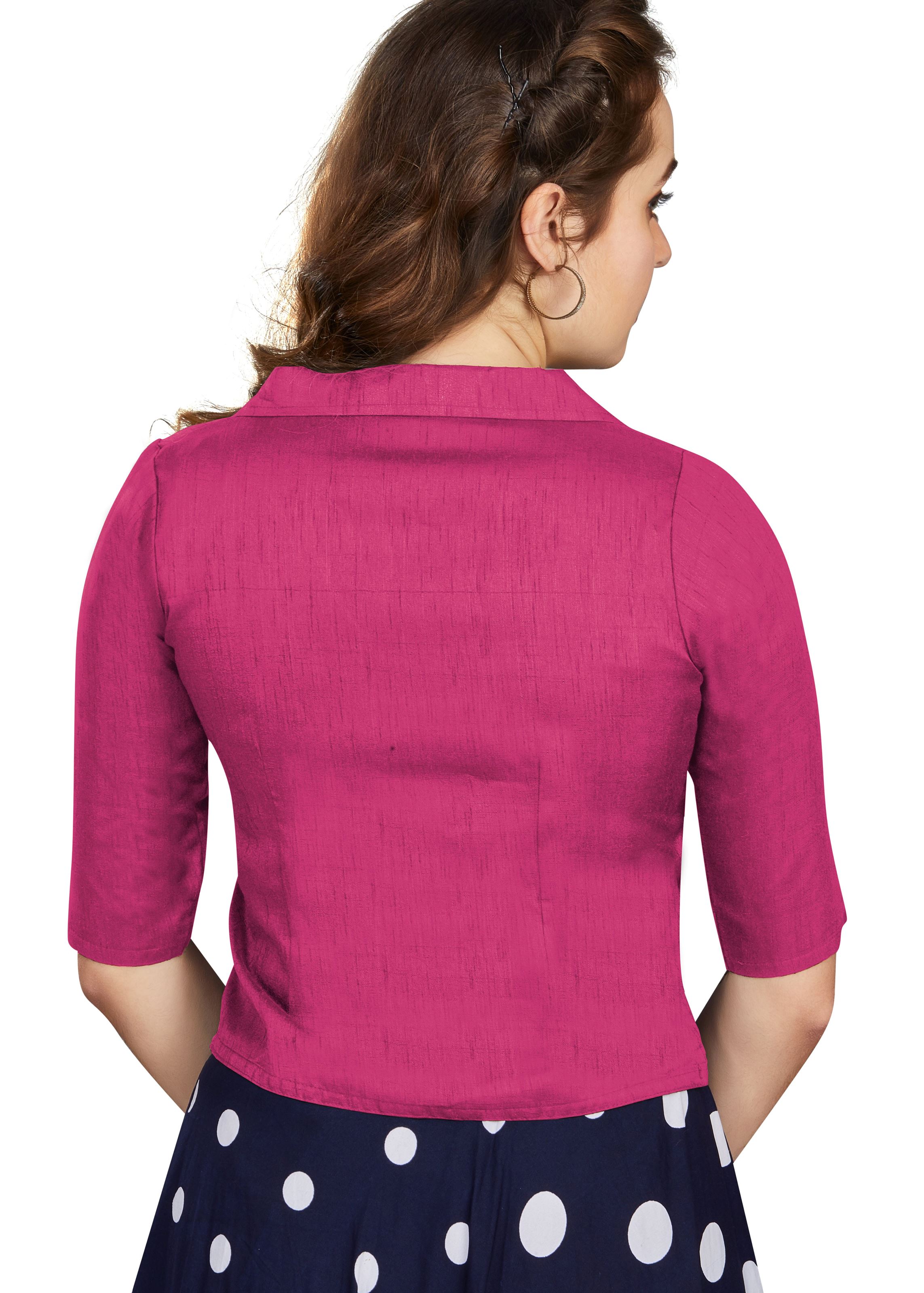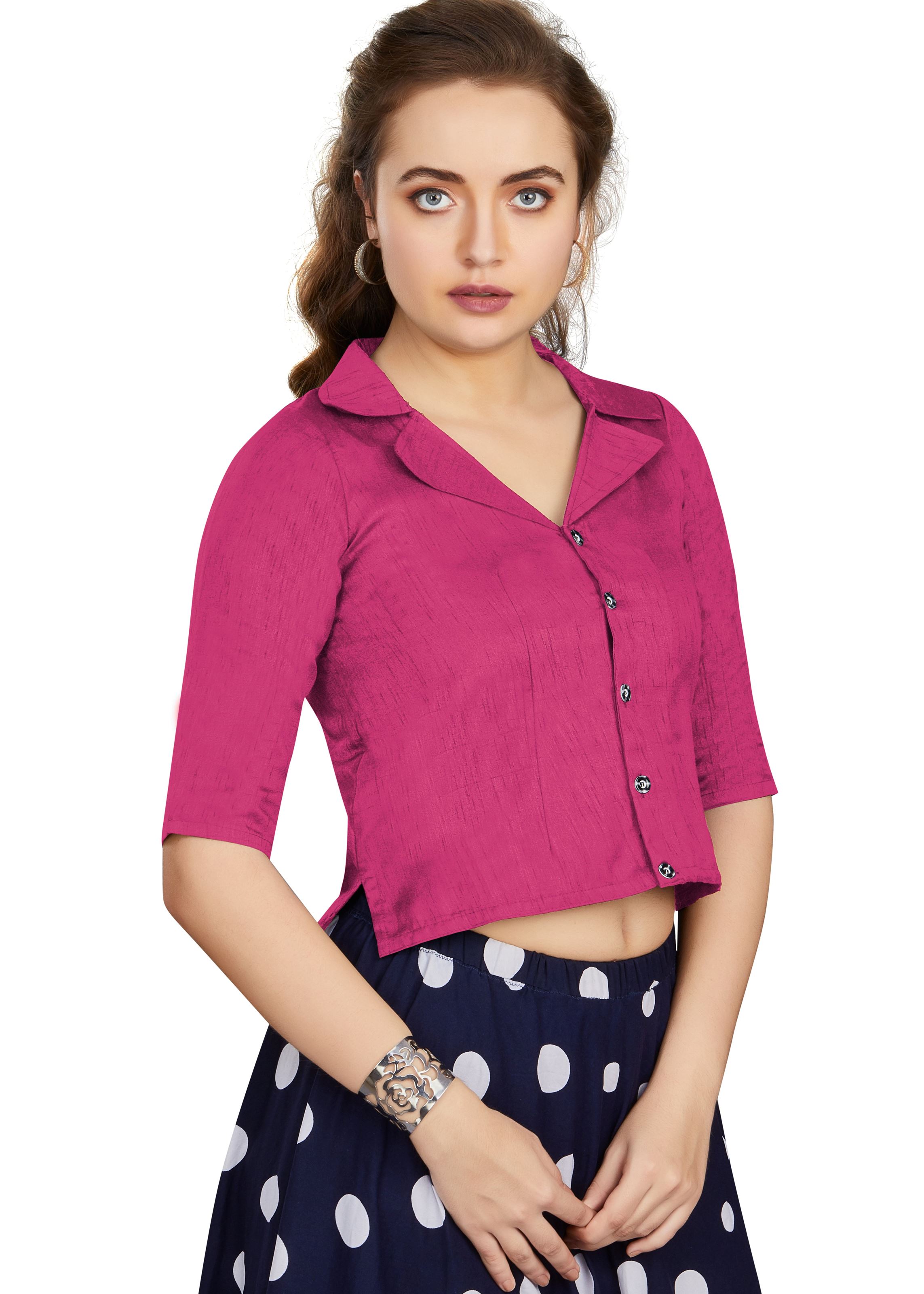 Whether you're attending a wedding function, a family celebration, or simply dressing up for a festive gathering, this blouse from Aethnofit Fashions is a must-have for fashion-forward women. If you're searching to buy readymade blouses online in the USA, this piece is a standout choice. Stylish, comfortable, and effortlessly chic, the Pink Art Silk Collar Neck Blouse brings together elegance and functionality in a silhouette that flatters all.