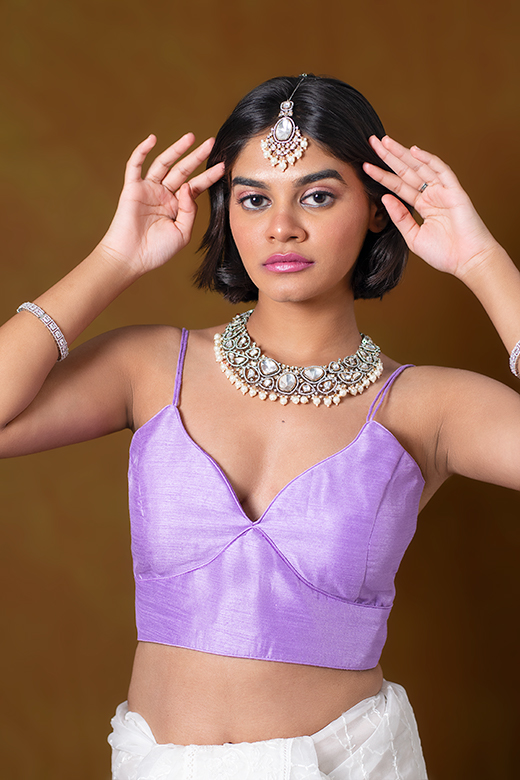 Purple Blouse with double noodle strap in A Sweetheart Neckline Straight Hemline