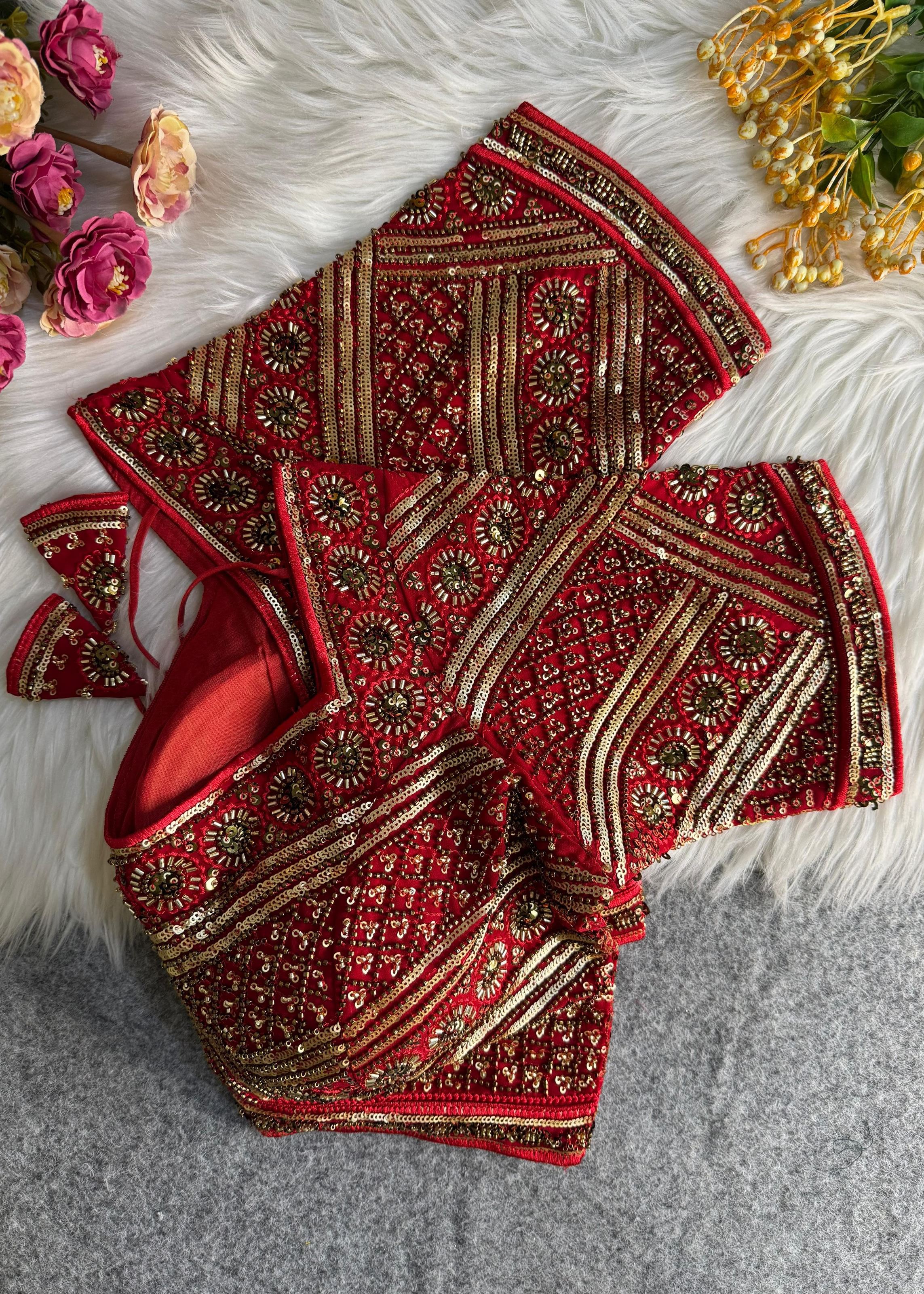 Red Handcrafted Royal Saree Blouse with Zari & Mirror Work