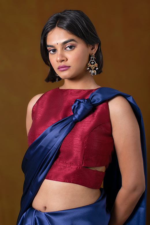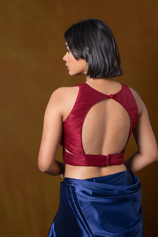 Red Sleeveless Blouse in Art Silk with Cut Out Back