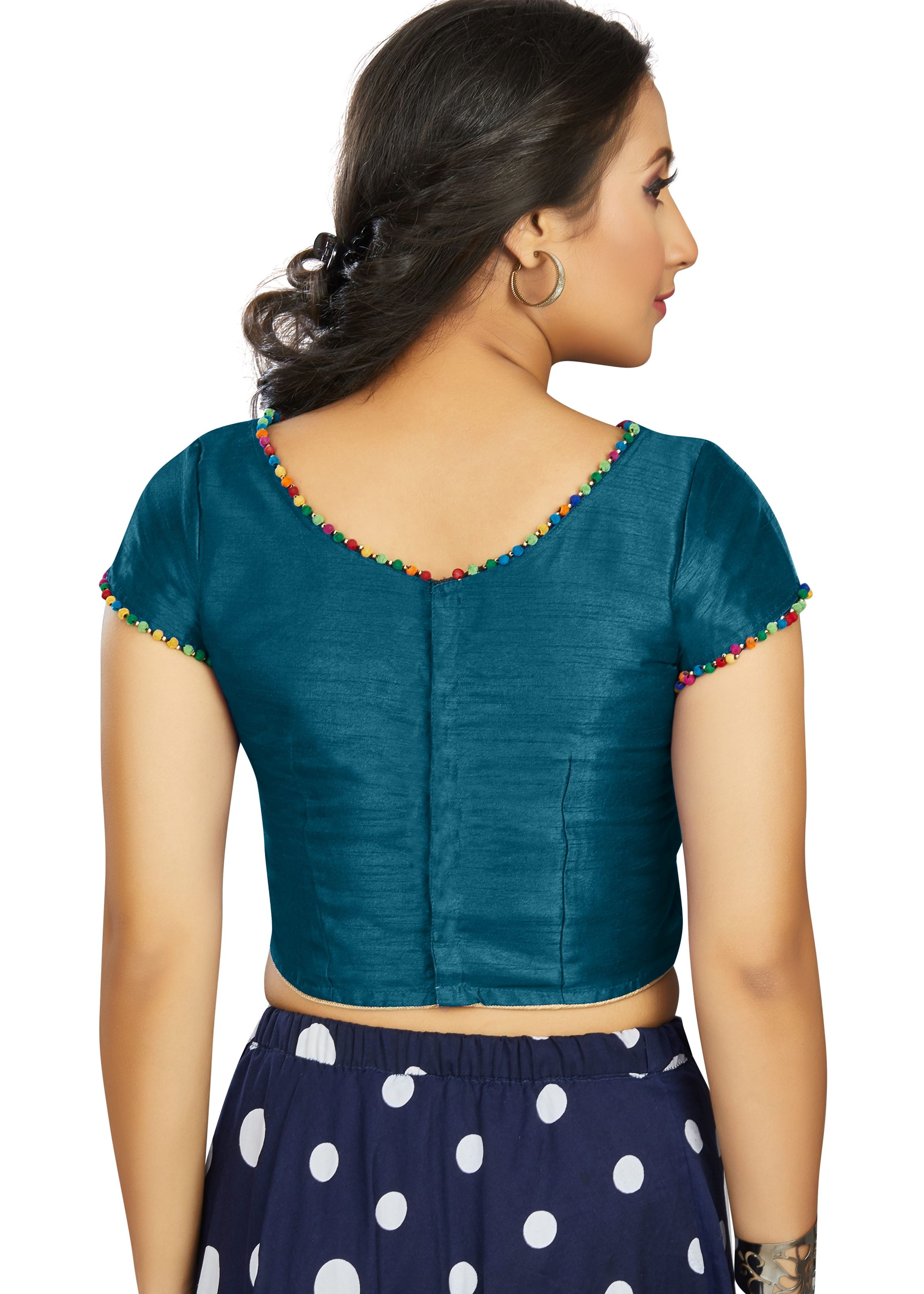 Pair it with statement earrings or a classic silk saree to complete your ensemble. With the Teal Art Silk Boat Neck Plain Blouse, sophistication comes effortlessly—bringing poise and elegance to your ethnic wear collection.