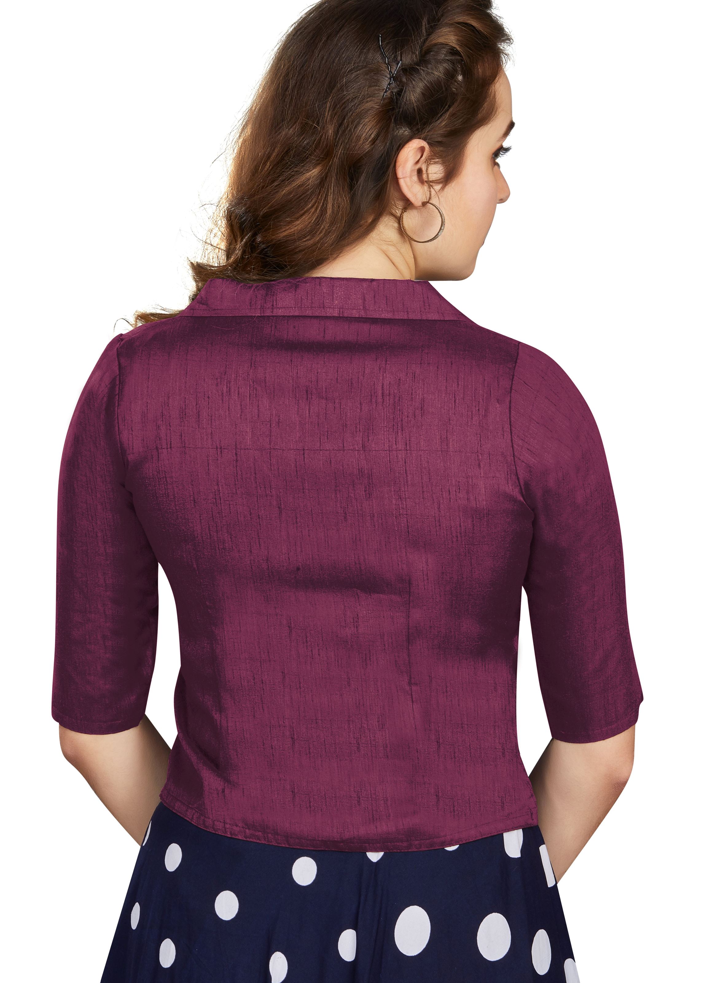Wine Art Silk Collar Neck Plain Blouse