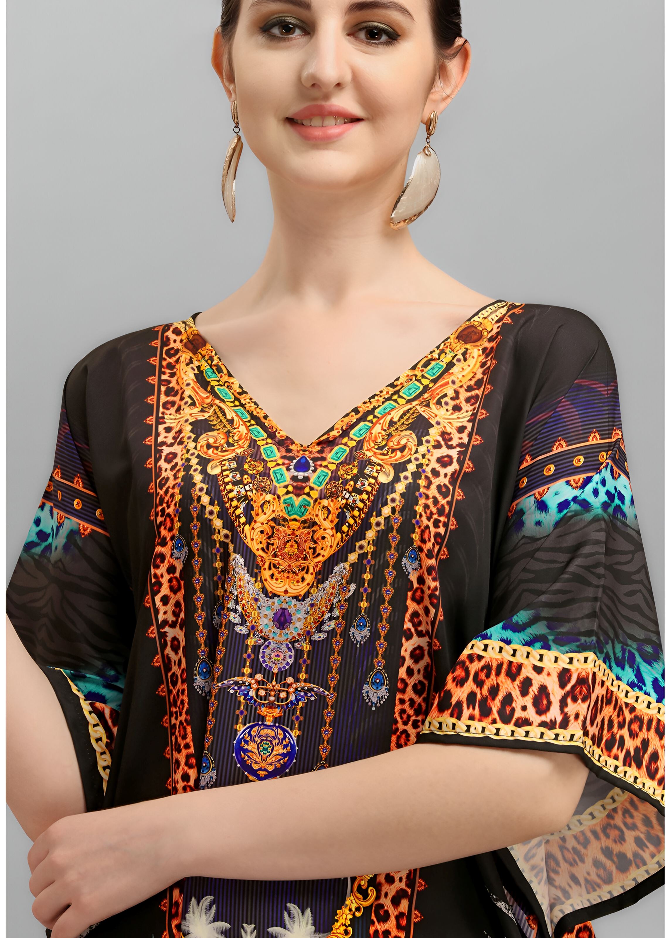 Multi Polyester Crepe Readymade Kaftan Digital Print With Stone Work - Length upto 57 inch