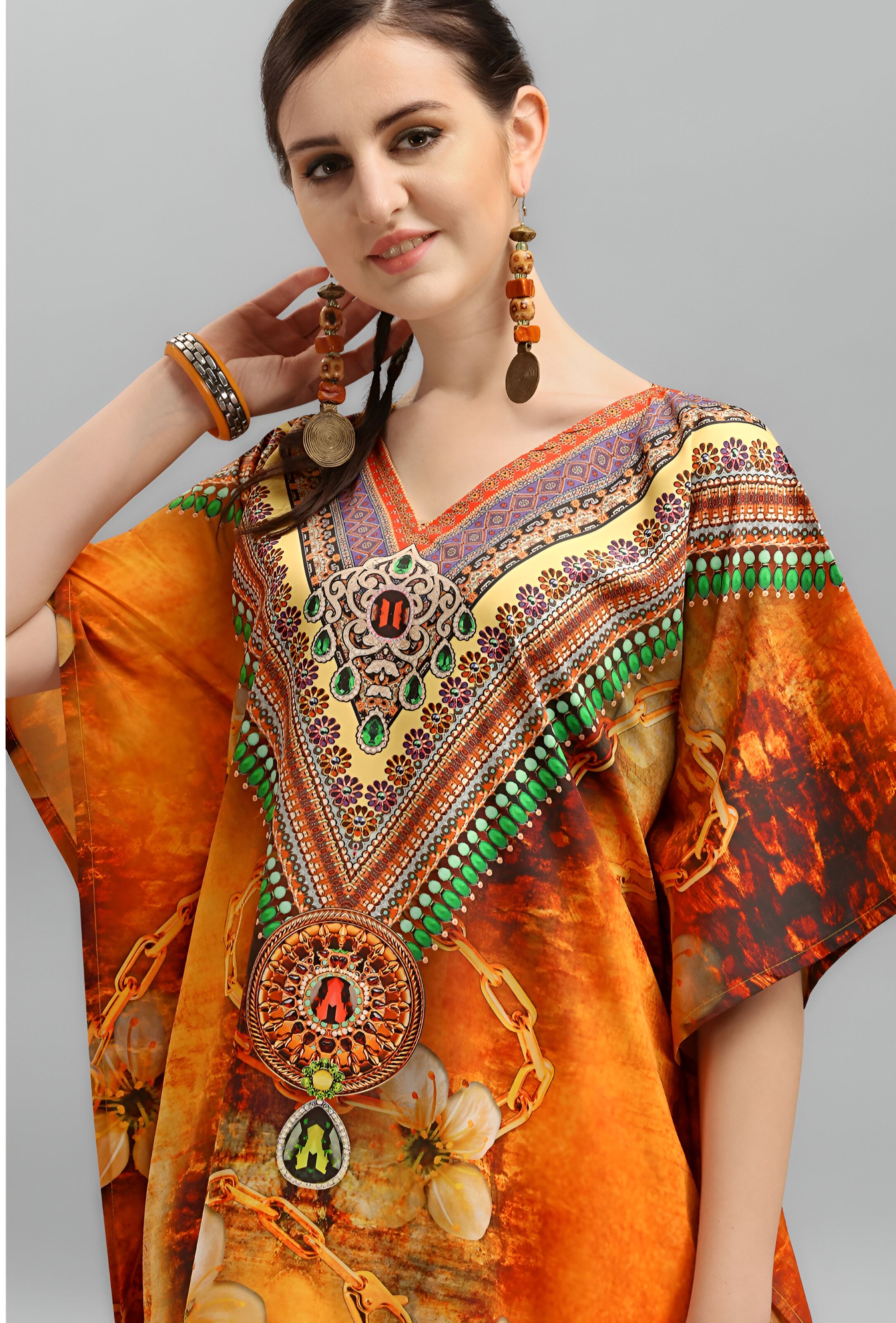 Multi Polyester Crepe Readymade Kaftan Digital Print With Stone Work - Length upto 57 inch