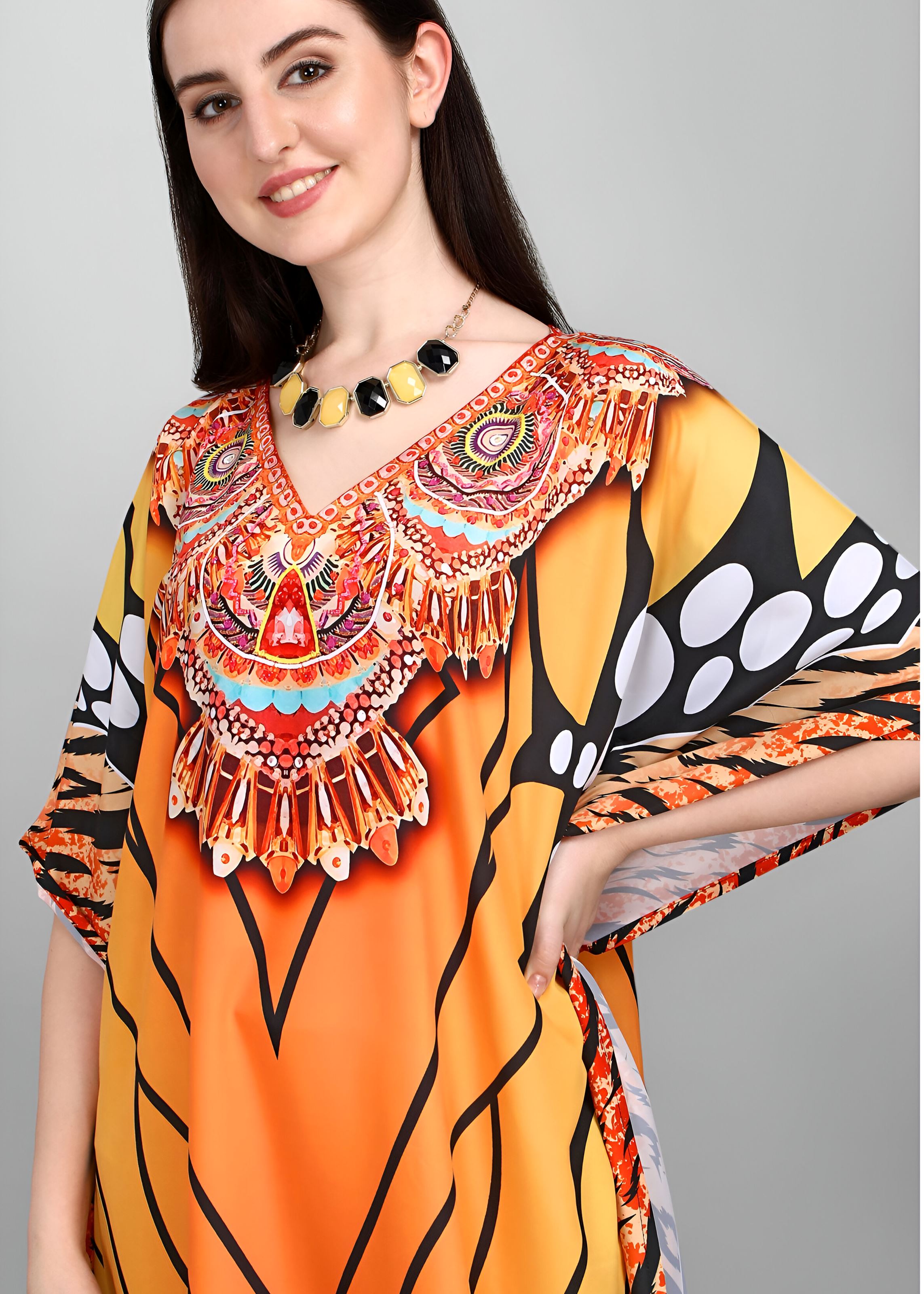 Multi Polyester Crepe Readymade Kaftan Digital Print With Stone Work - Length upto 57 inch