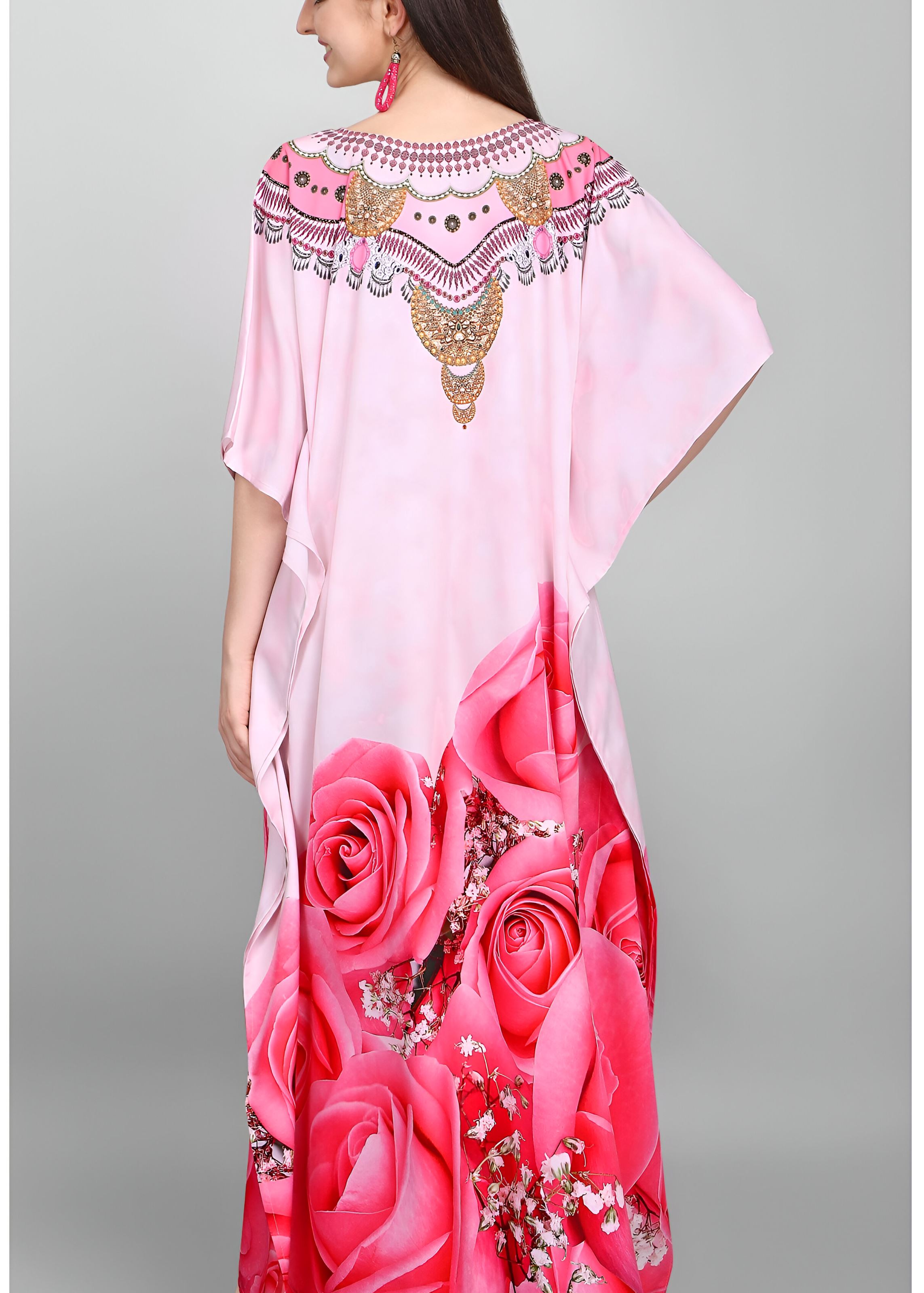 Multi Polyester Crepe Readymade Kaftan Digital Print With Stone Work - Length upto 57 inch