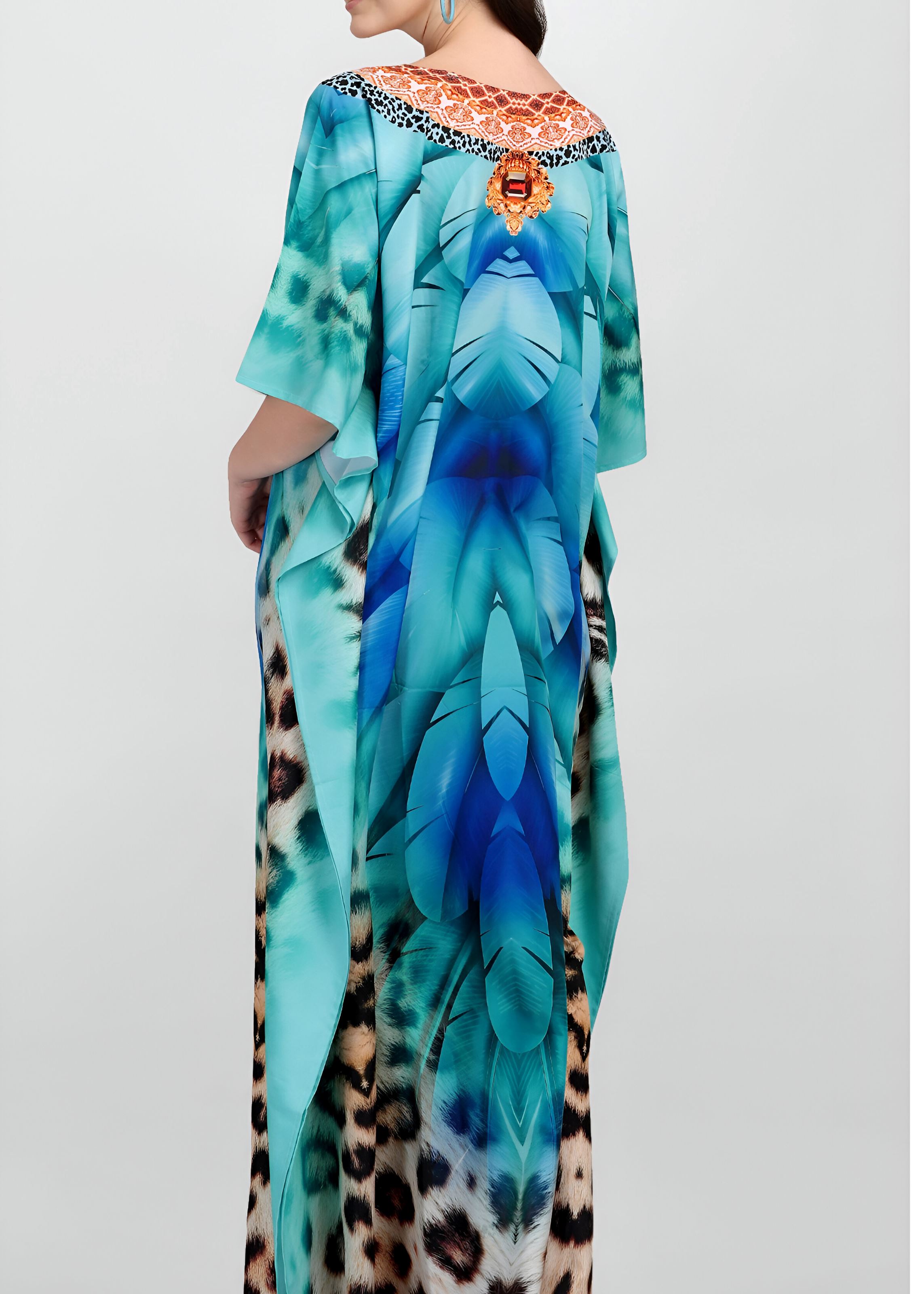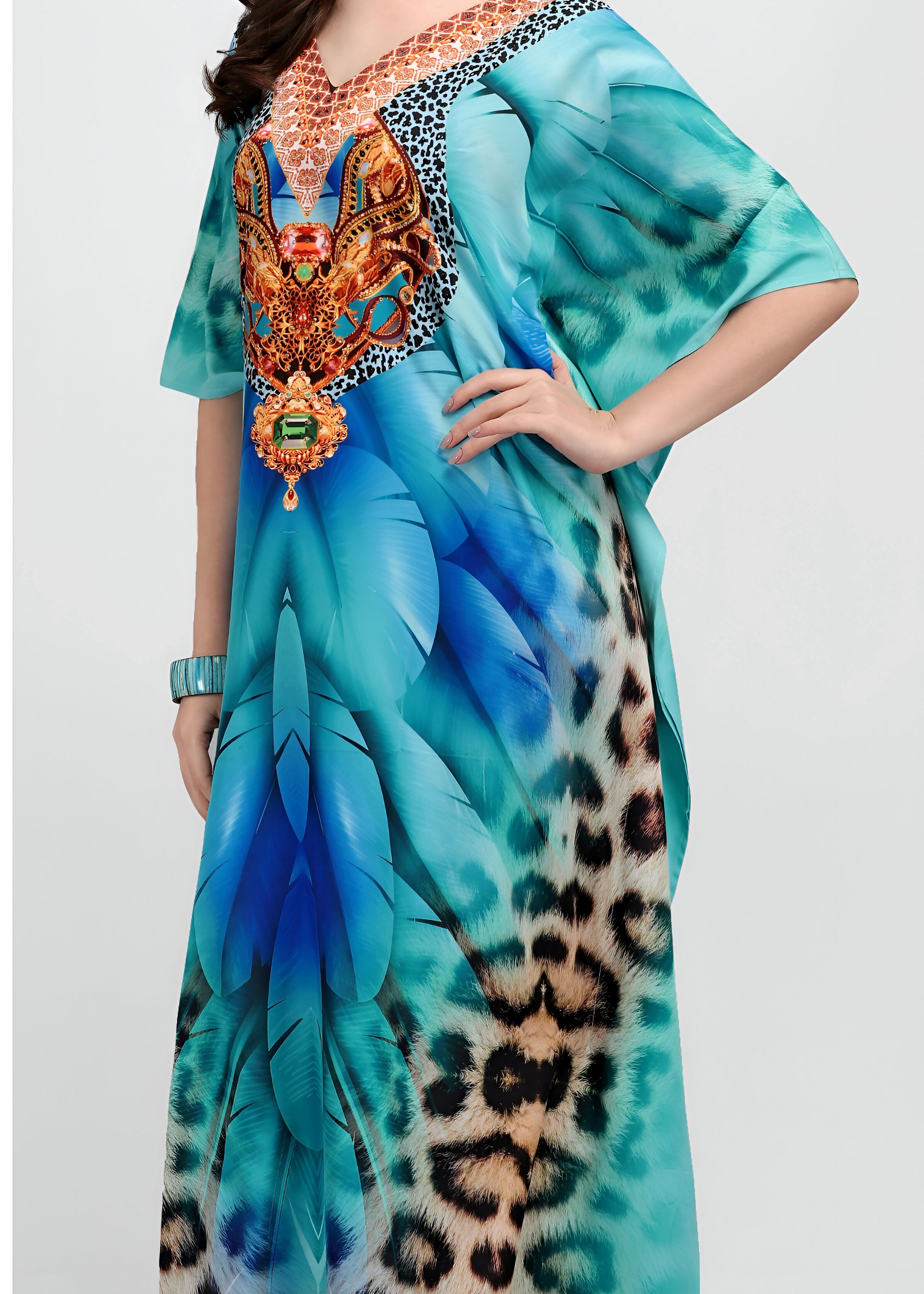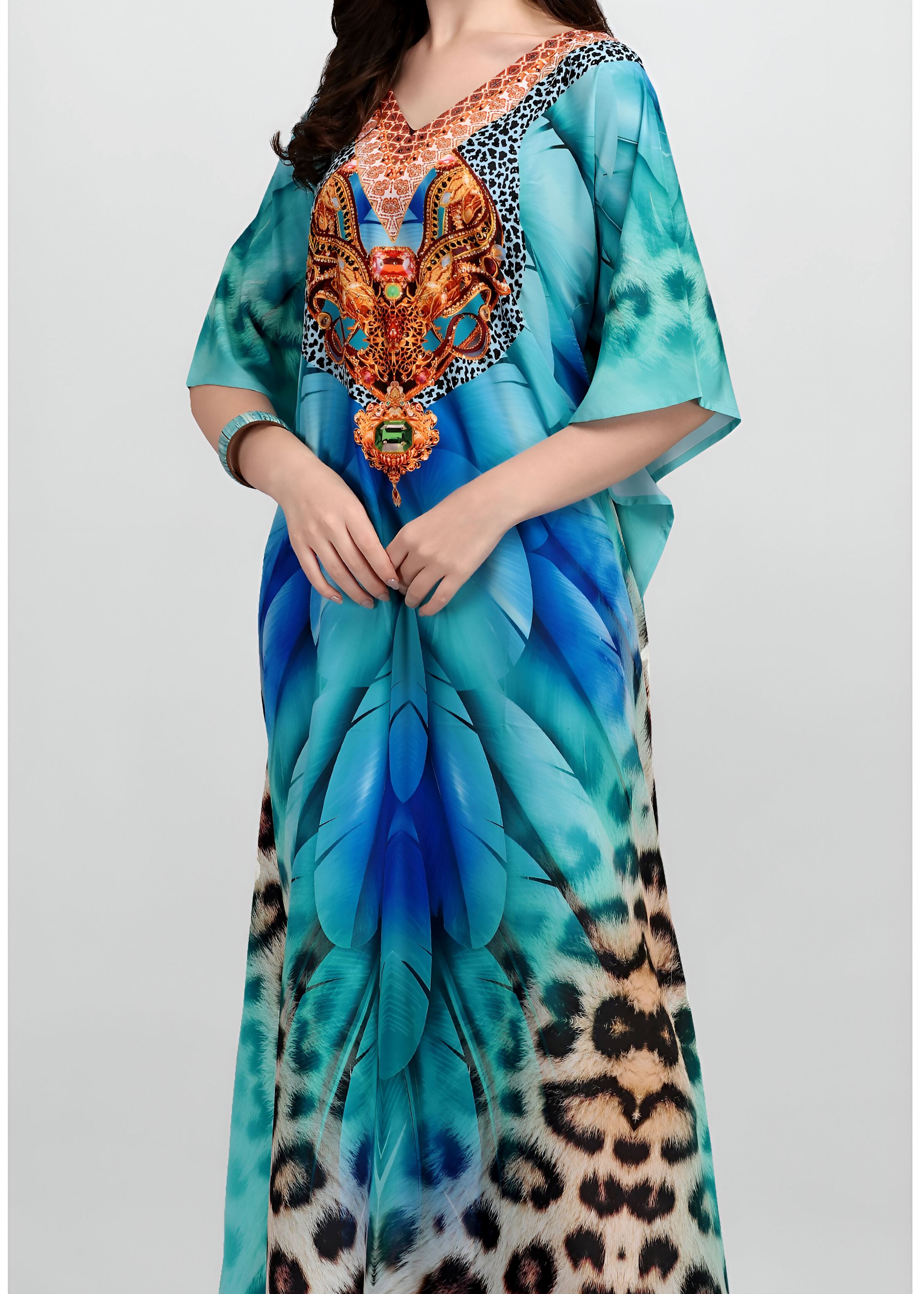 Multi Polyester Crepe Readymade Kaftan Digital Print With Stone Work - Length upto 57 inch