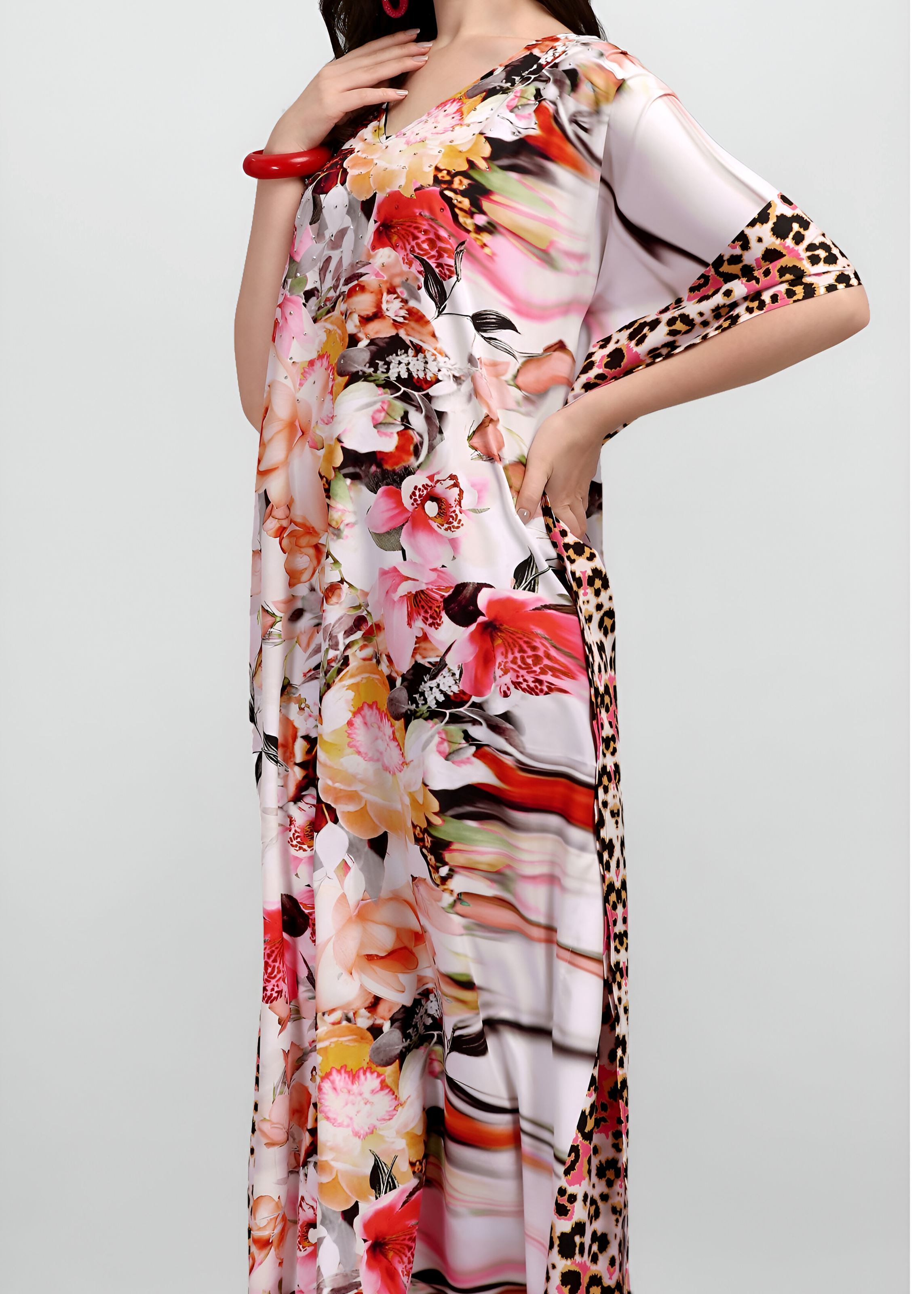 Multi Polyester Crepe Readymade Kaftan Digital Print With Stone Work - Length upto 57 inch