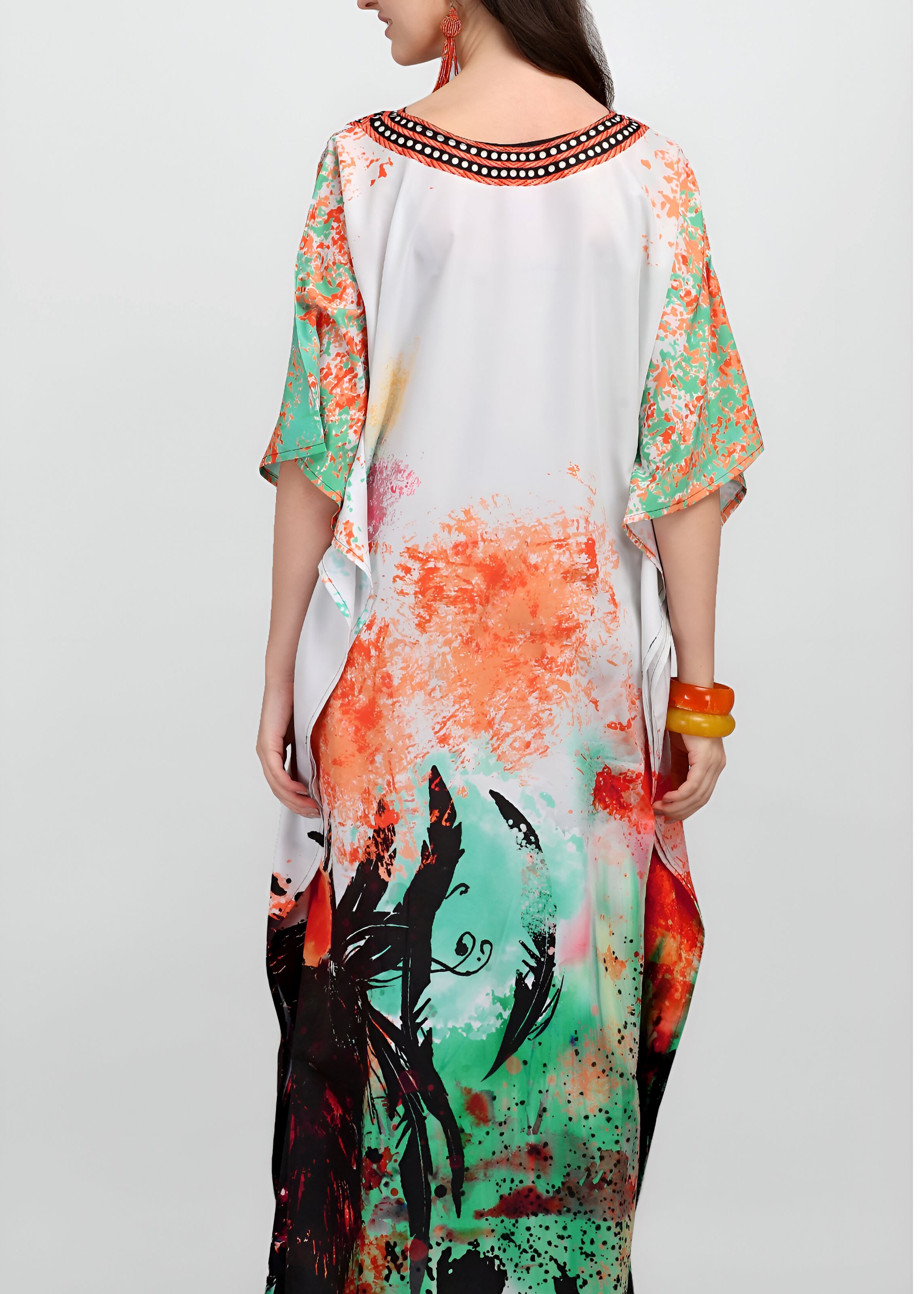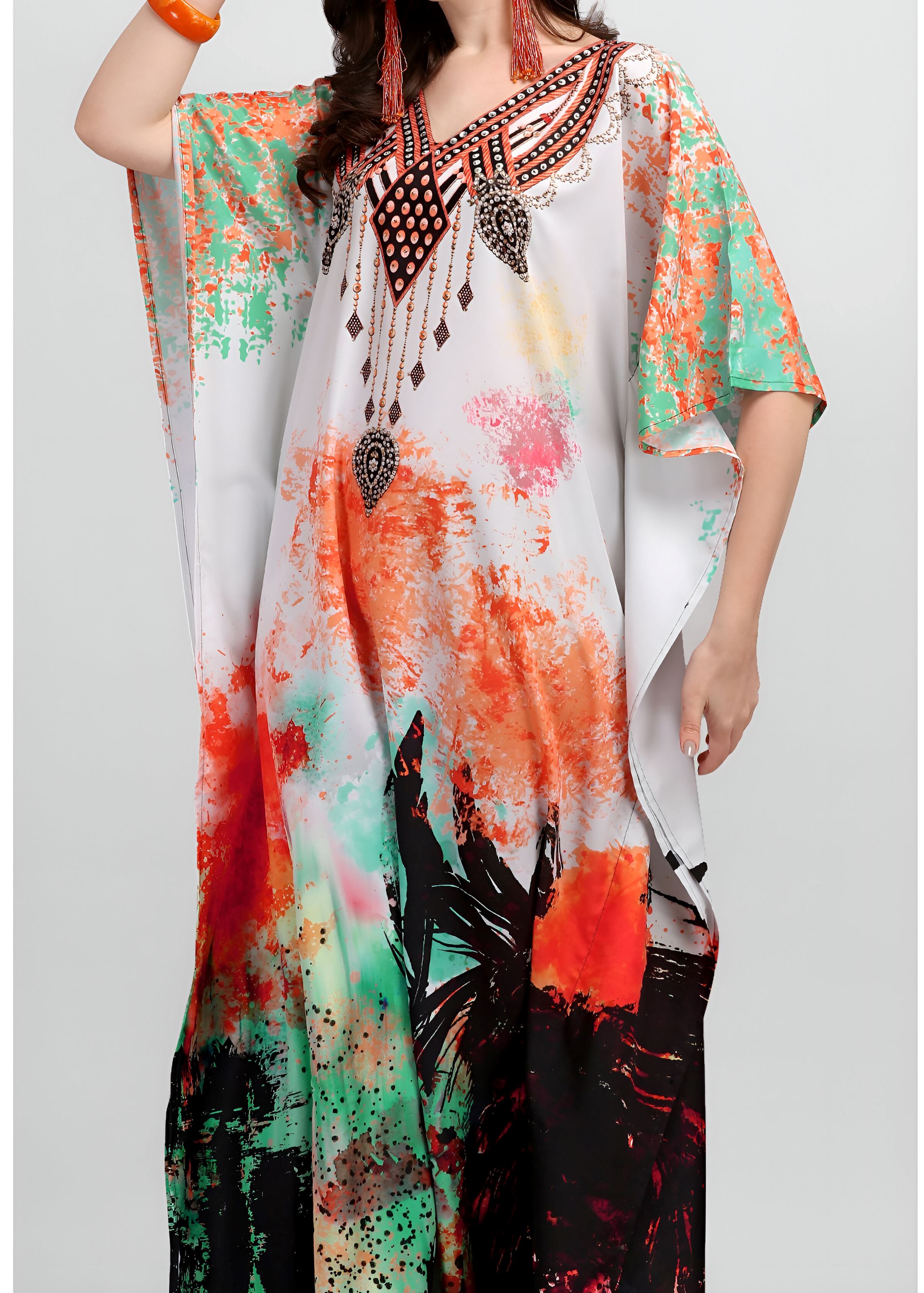 Multi Polyester Crepe Readymade Kaftan Digital Print With Stone Work - Length upto 57 inch