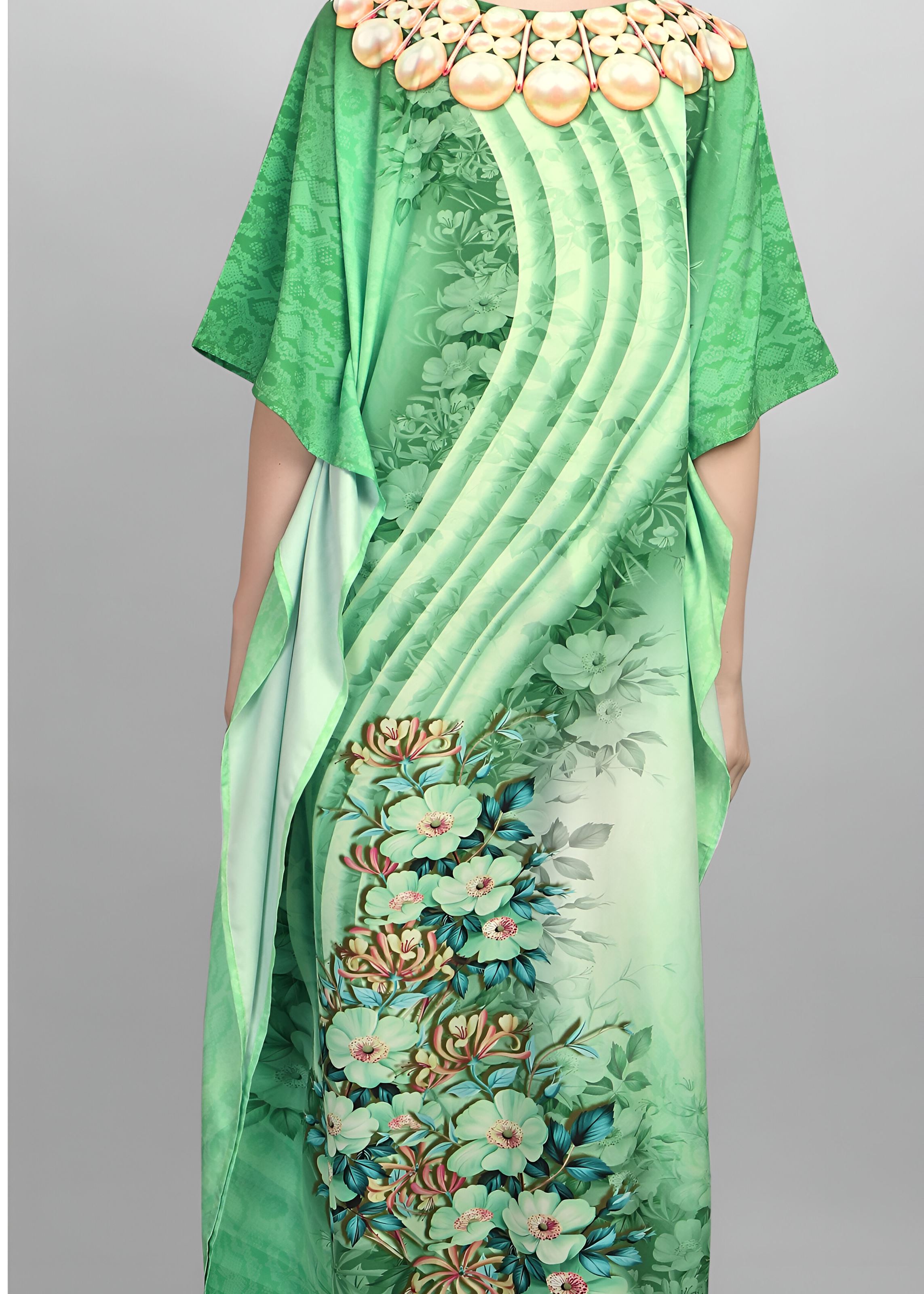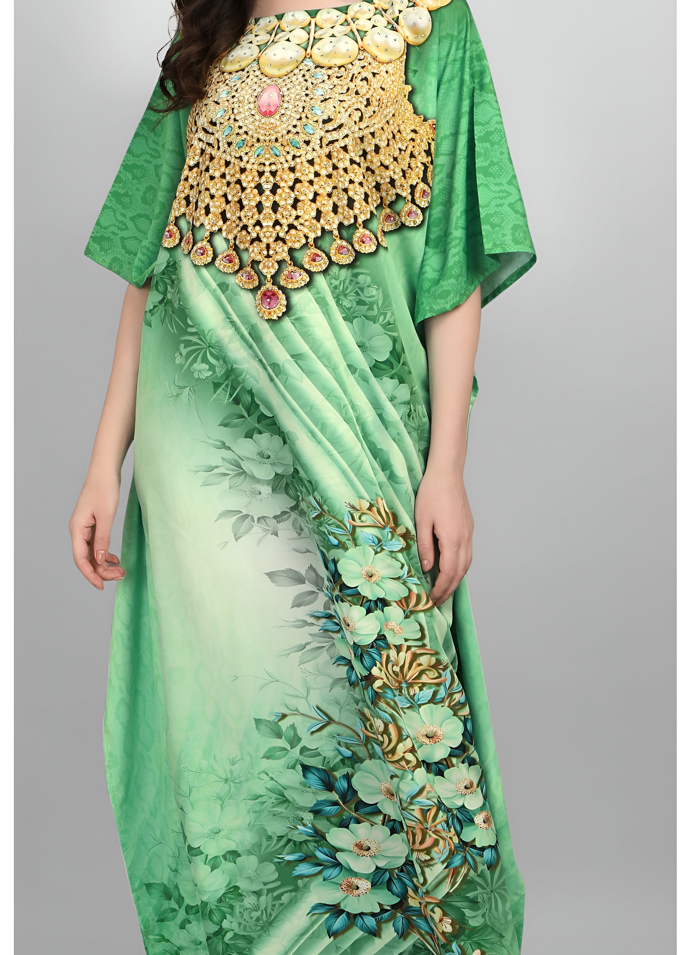 Multi Polyester Crepe Readymade Kaftan Digital Print With Stone Work - Length upto 57 inch