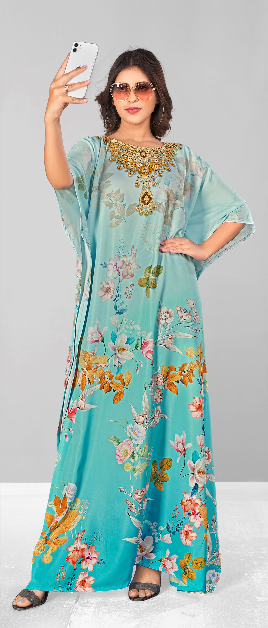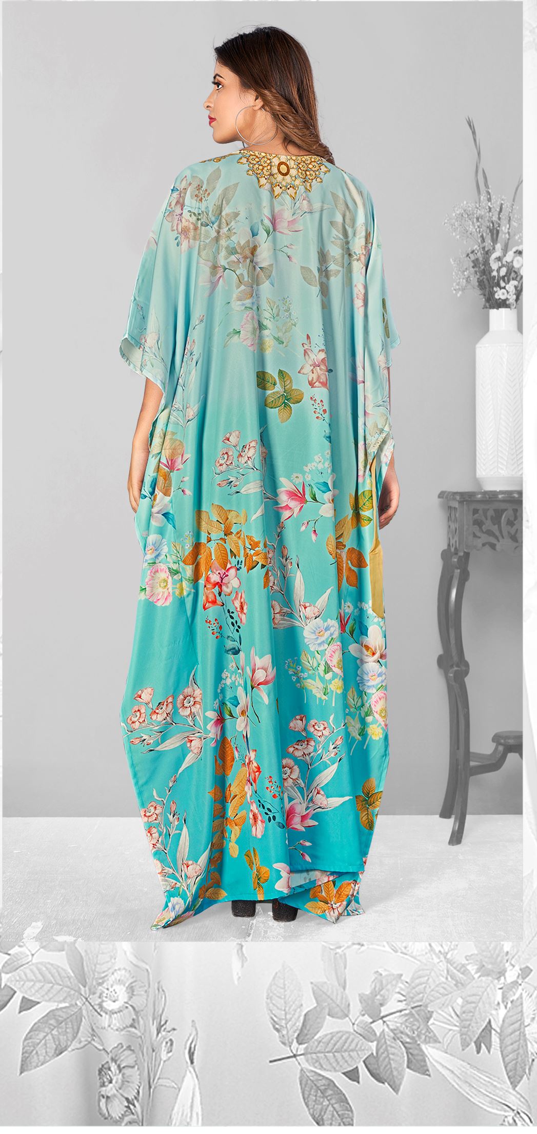Multi Polyester Crepe Readymade Kaftan Digital Print With Stone Work - Length upto 57 inch