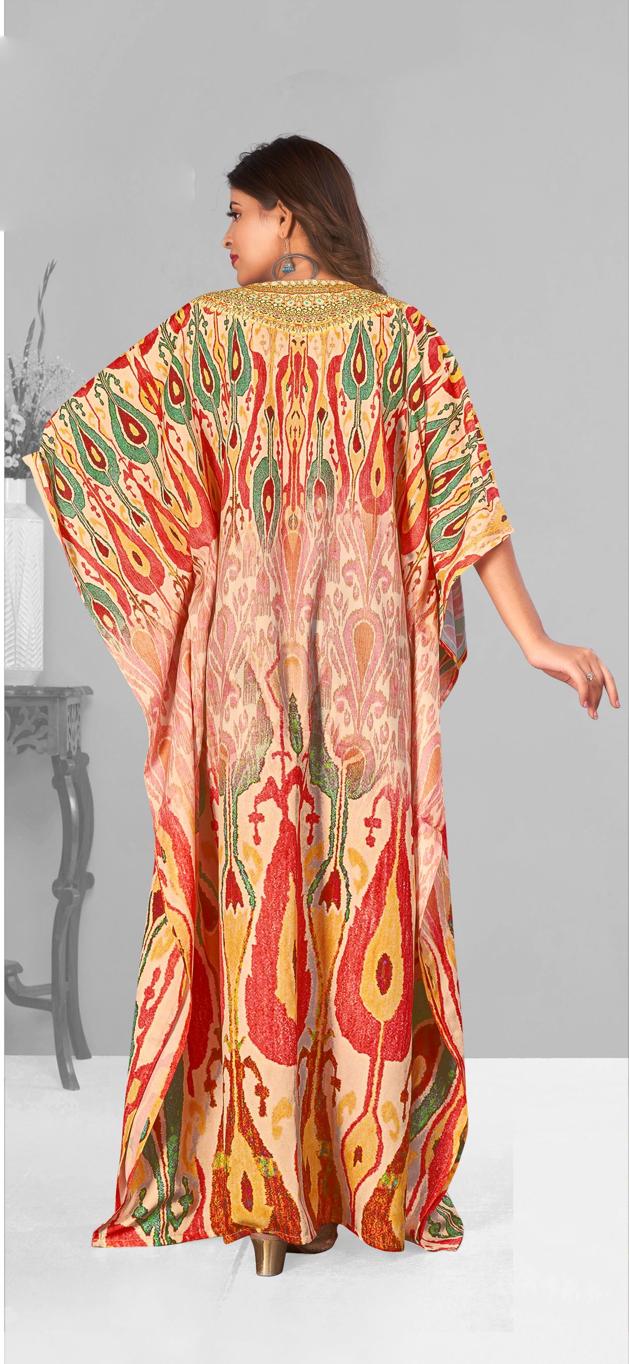 Multi Polyester Crepe Readymade Kaftan Digital Print With Stone Work - Length upto 57 inch