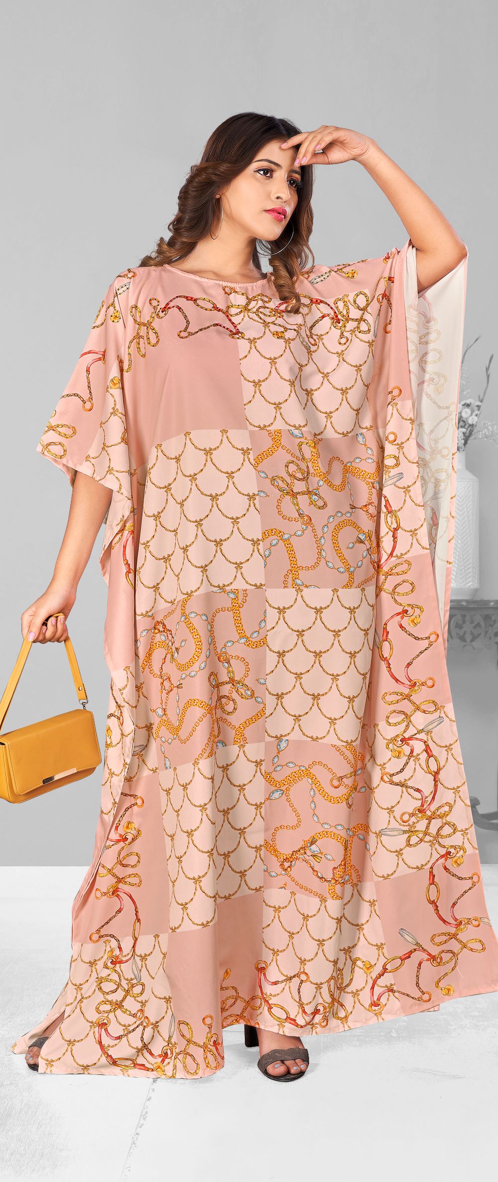 Multi Polyester Crepe Readymade Kaftan Digital Print With Stone Work - Length upto 57 inch