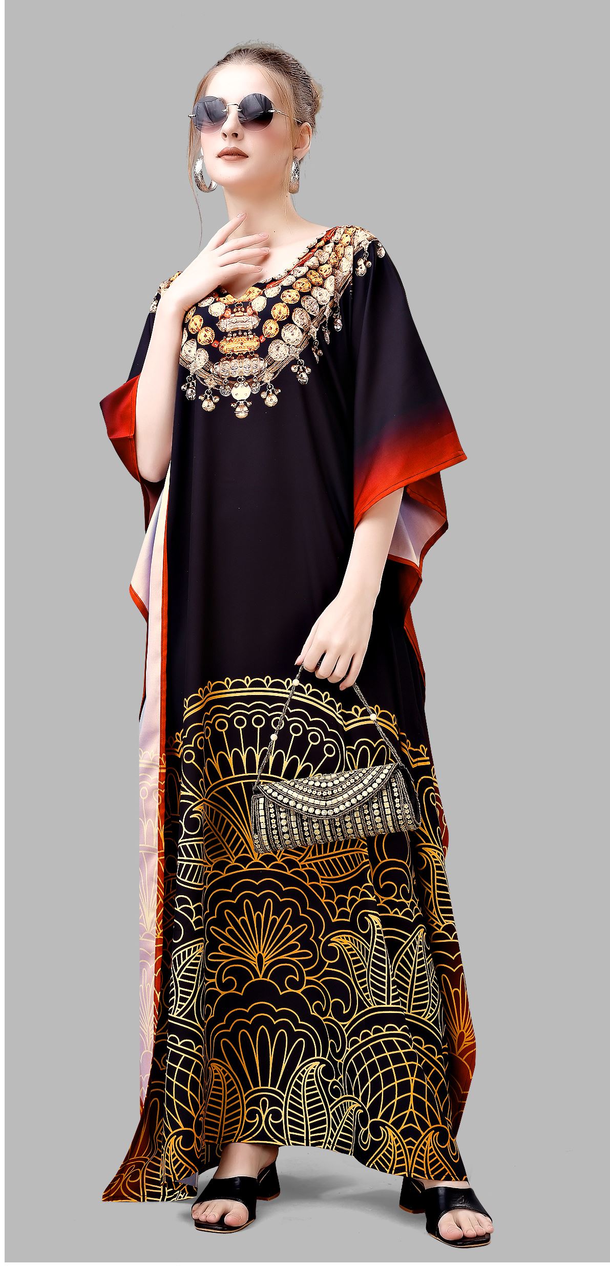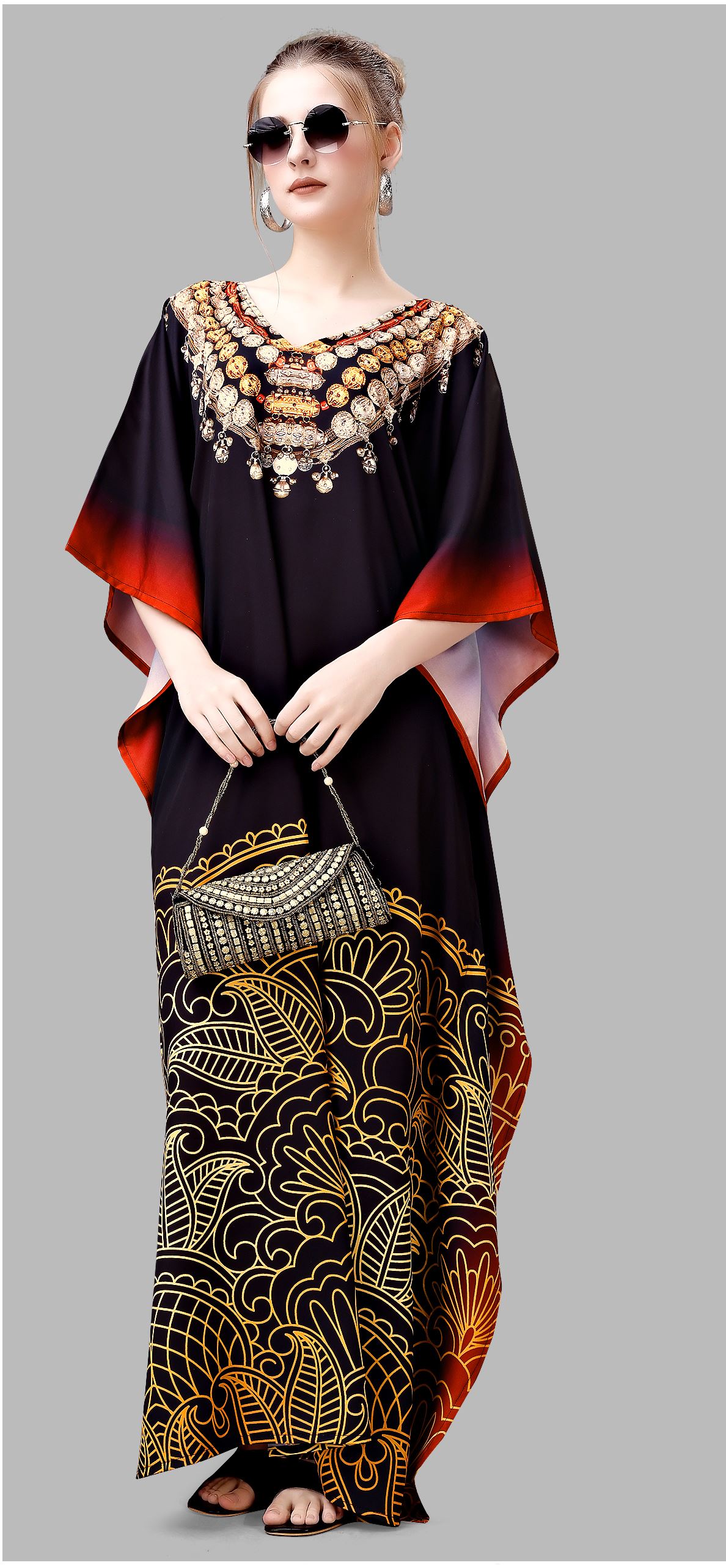 Multi Polyester Crepe Readymade Kaftan Digital Print With Stone Work - Length upto 57 inch