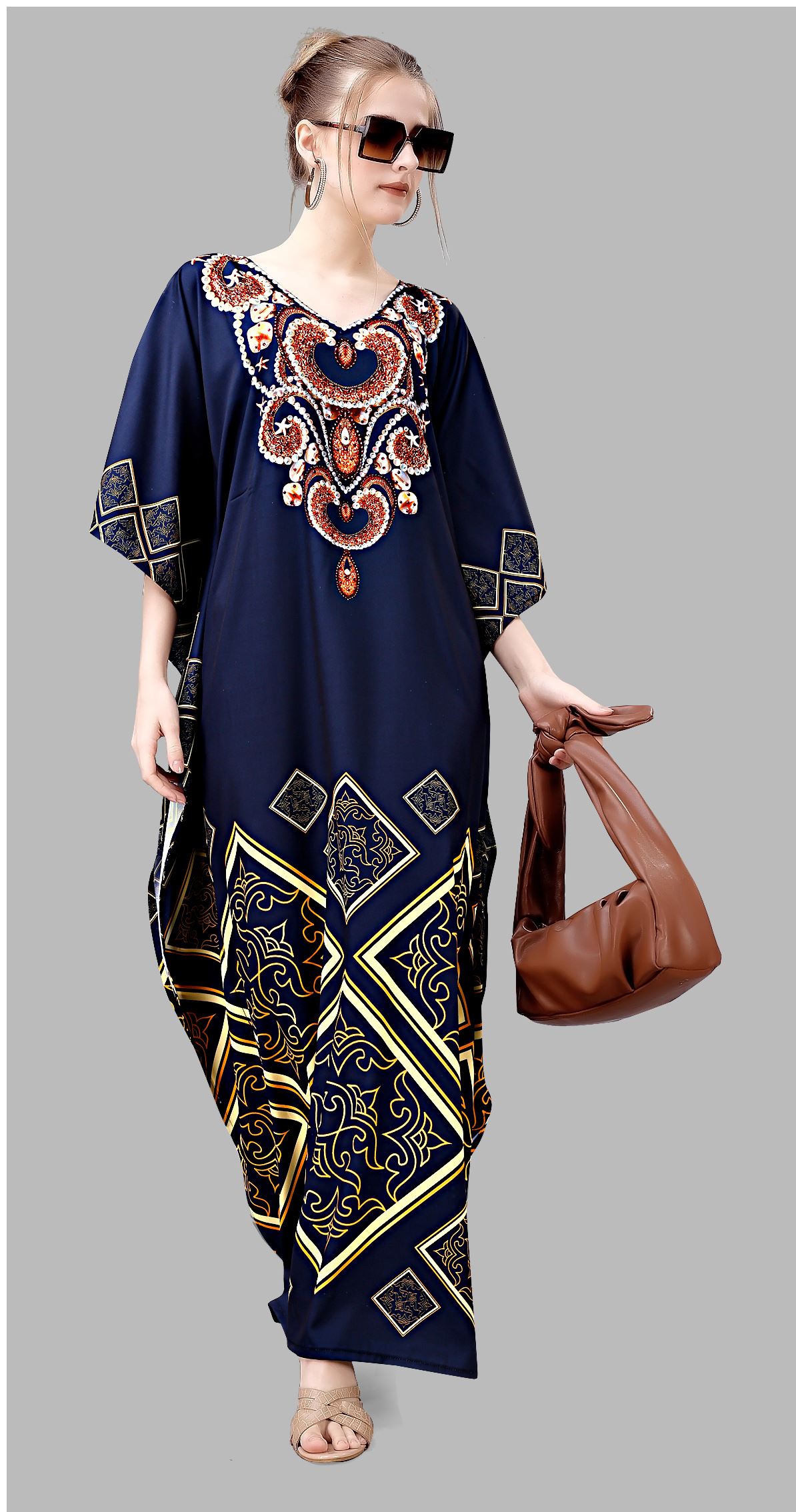 Multi Polyester Crepe Readymade Kaftan Digital Print With Stone Work - Length upto 57 inch