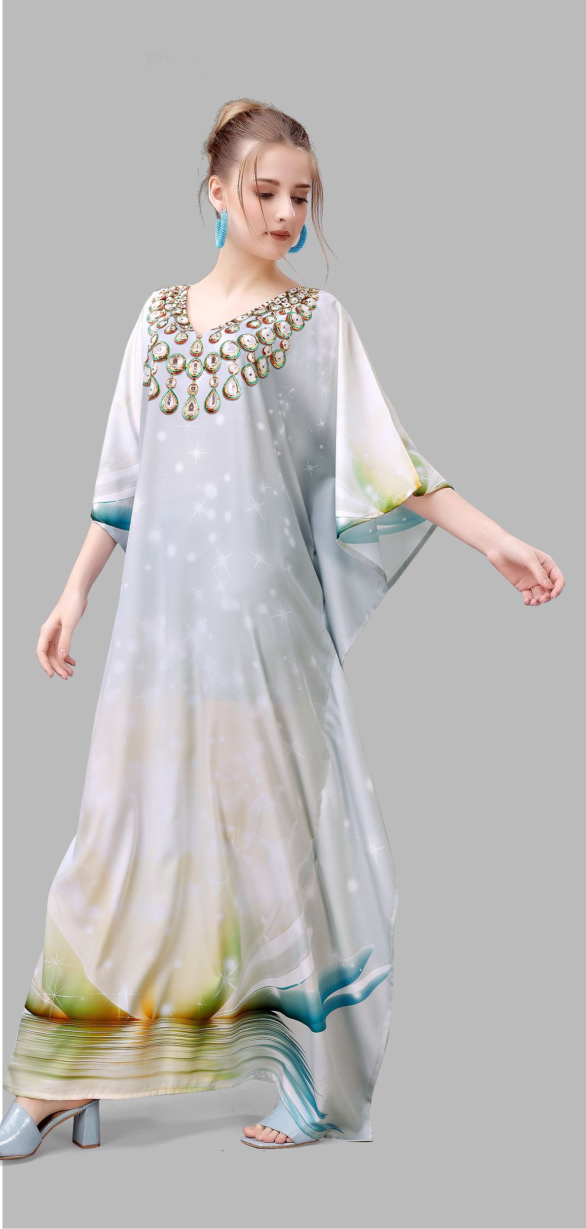 Multi Polyester Crepe Readymade Kaftan Digital Print With Stone Work - Length upto 57 inch
