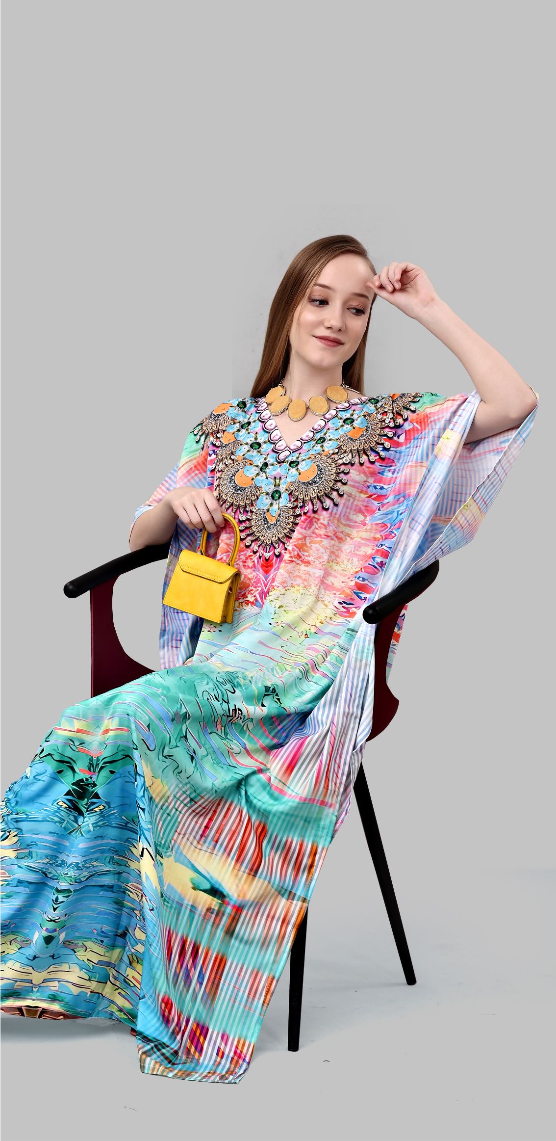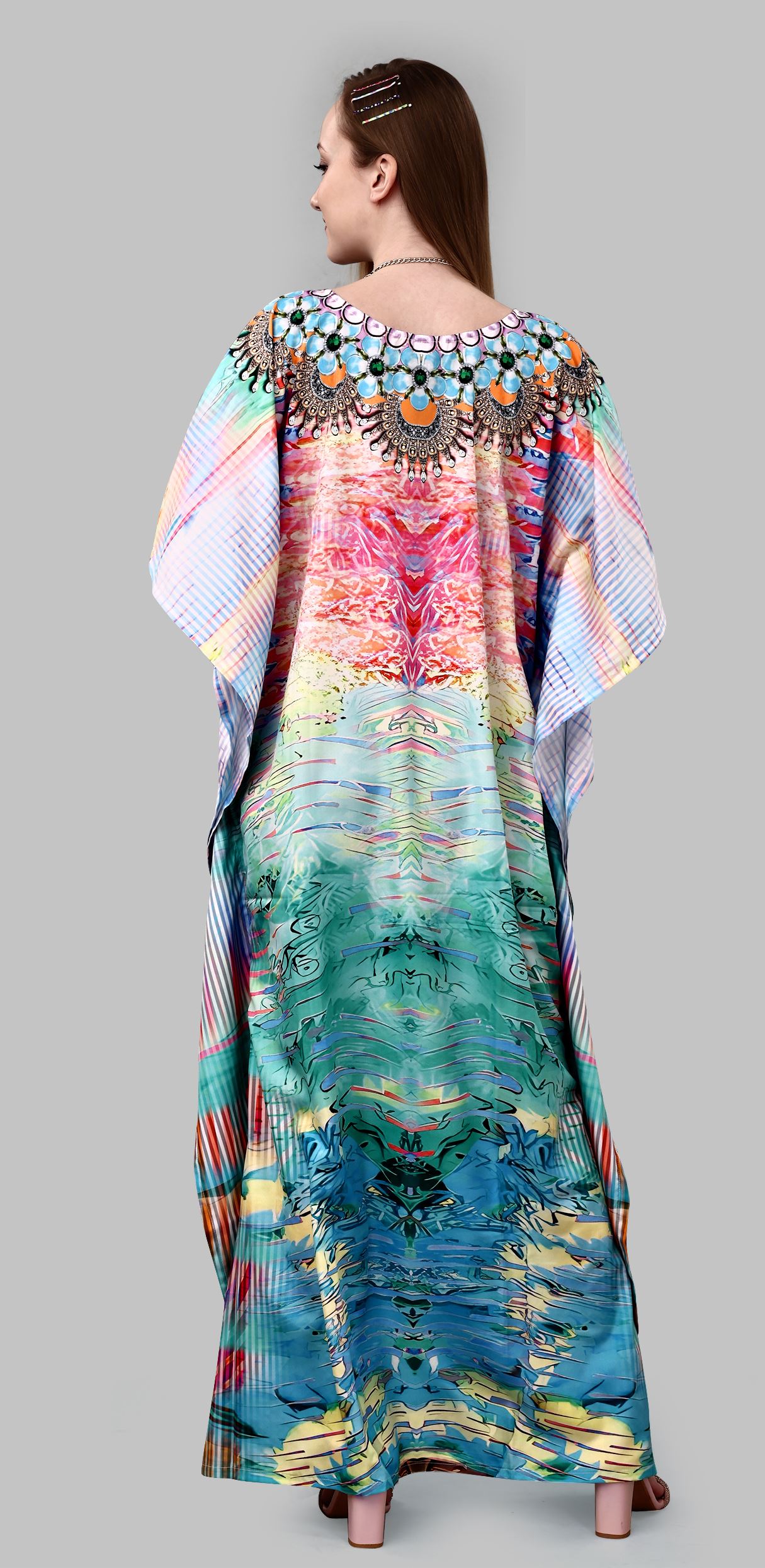 Multi Polyester Crepe Readymade Kaftan Digital Print With Stone Work - Length upto 57 inch