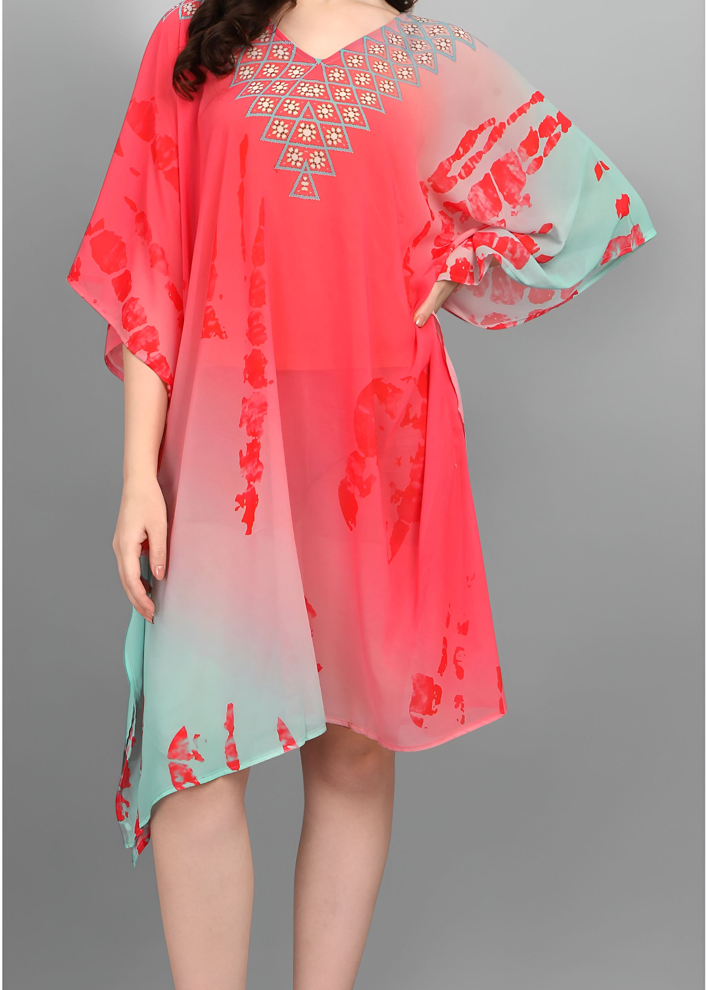 Multi Weightless Georgette Readymade Kaftan With Digital Printed