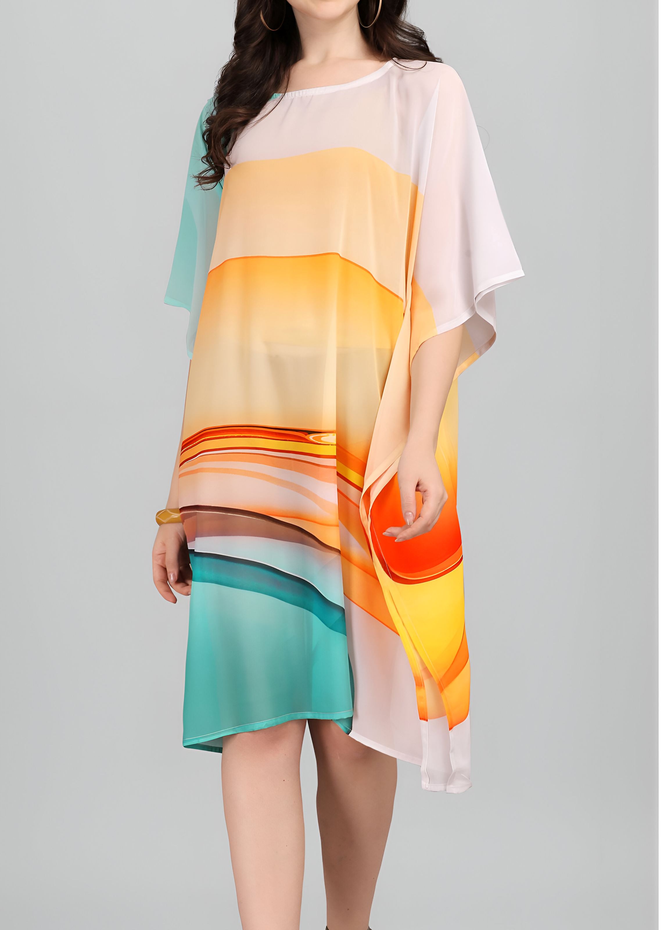 Multi Weightless Georgette Readymade Kaftan With Digital Printed