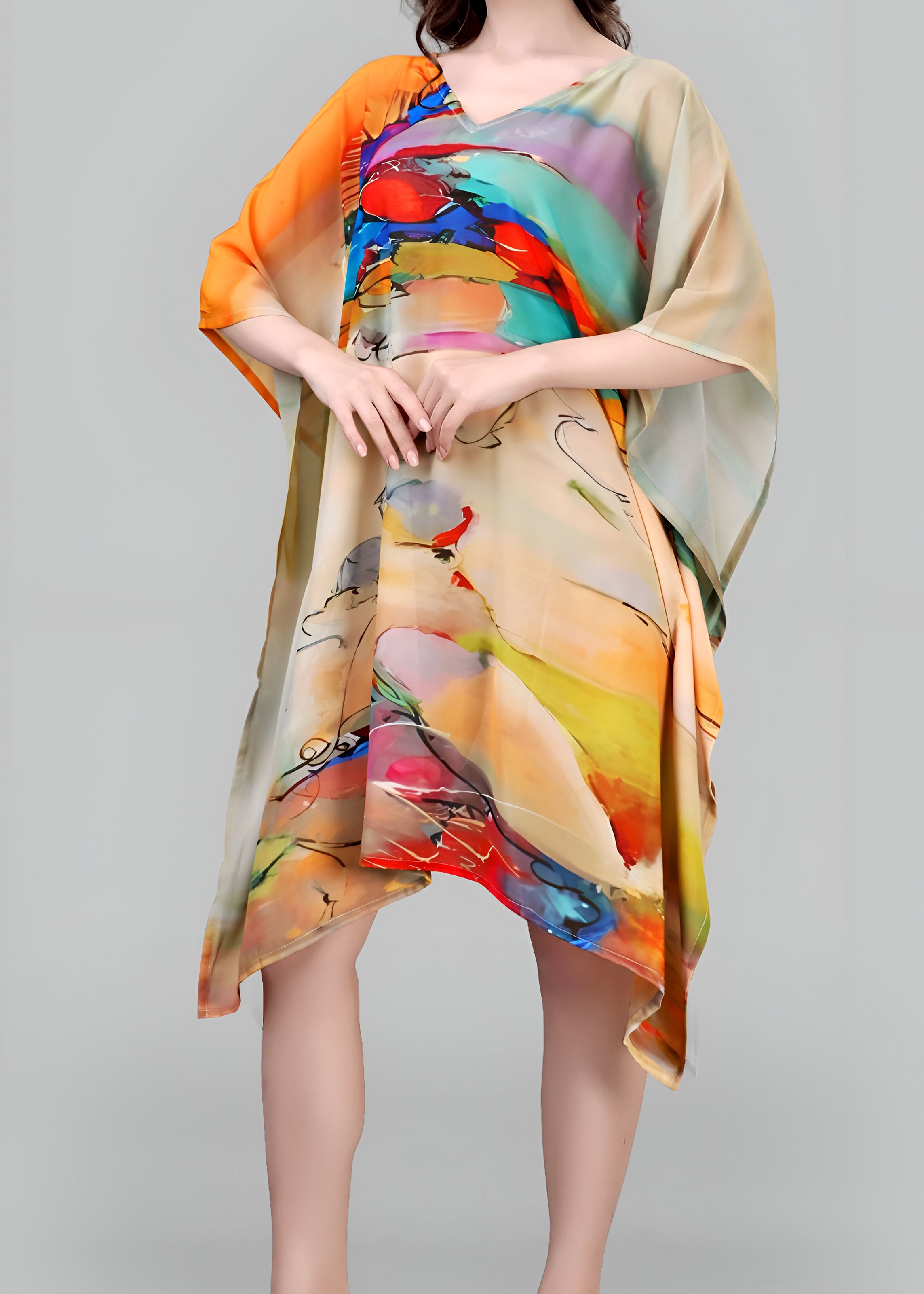 Multi Weightless Georgette Readymade Kaftan With Digital Printed