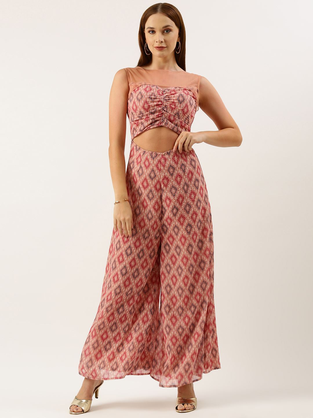Multicolored Georgette Jumpsuits with Print with Crochat Work