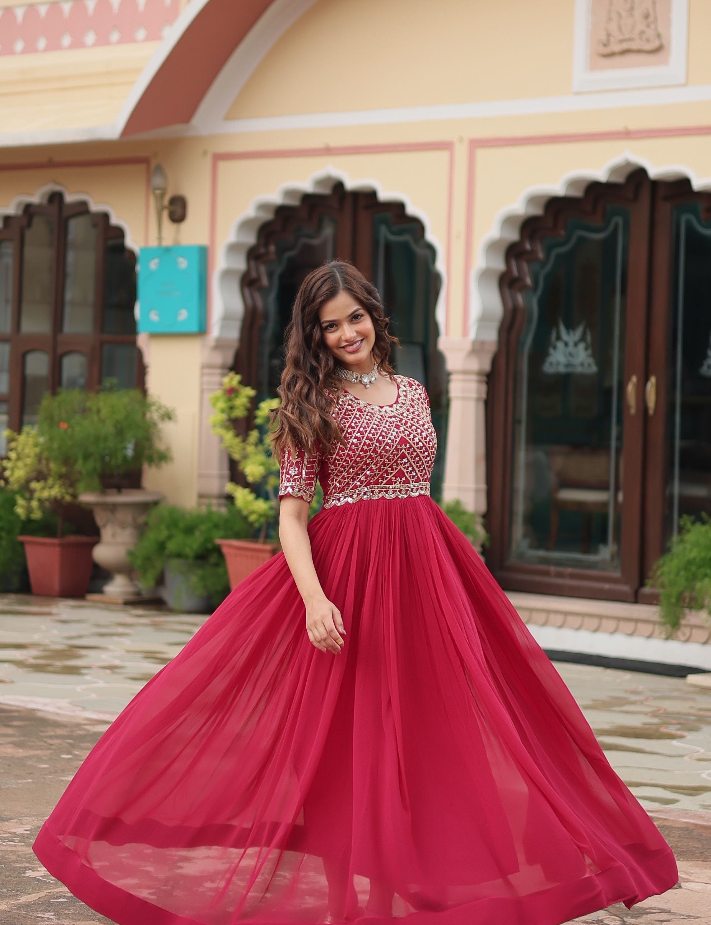 Pink Faux Blooming Gown With Embroidery Zari Sequins Work