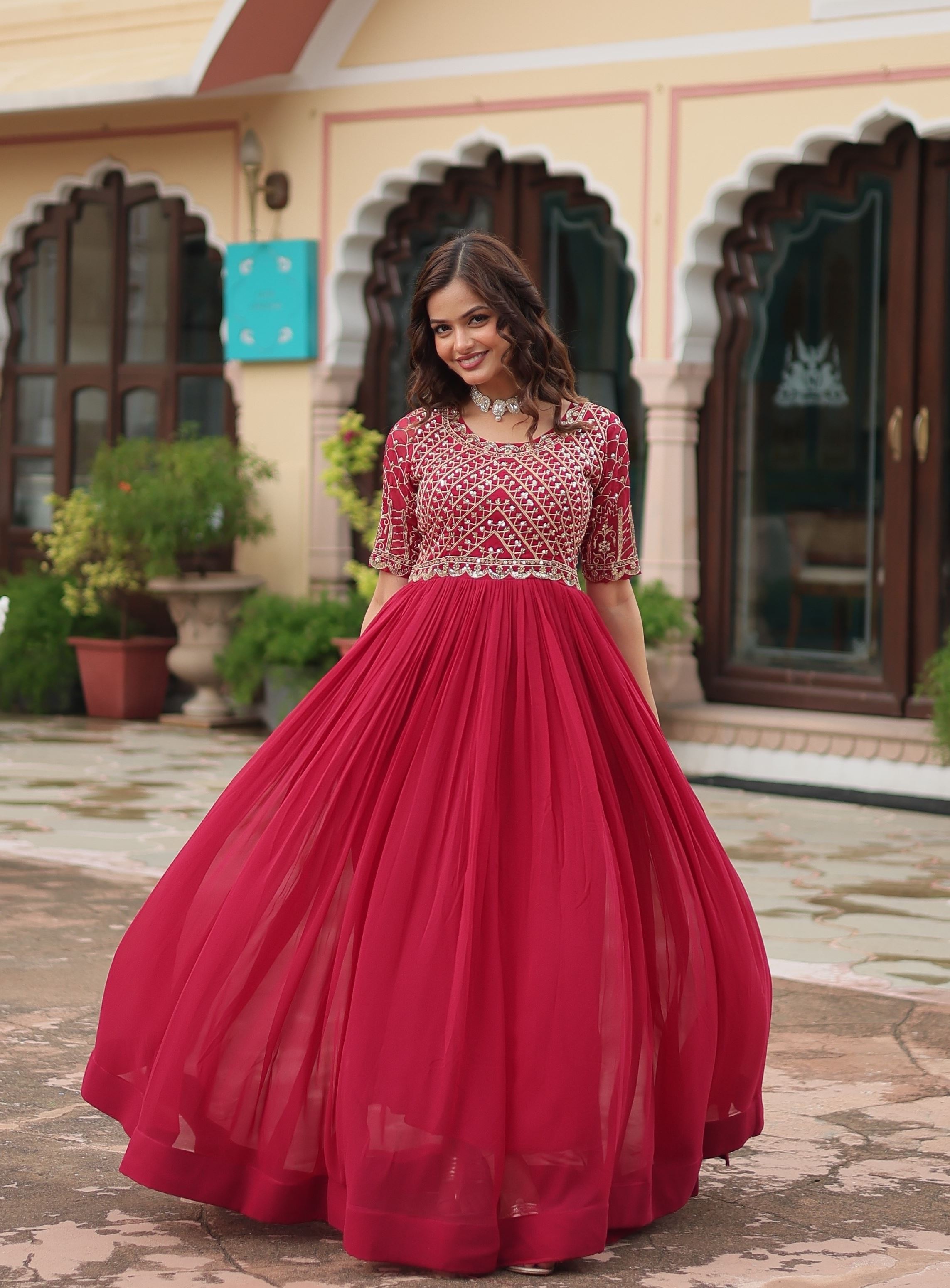 Pink Faux Blooming Gown With Embroidery Zari Sequins-work